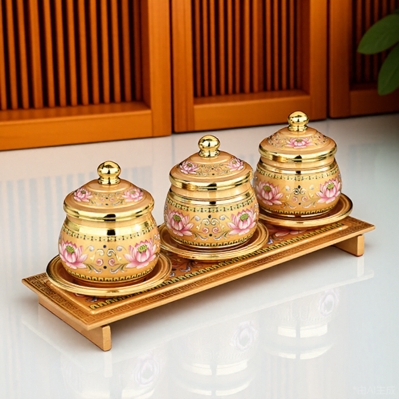佛具用品珐琅彩佛前供灯家用供佛杯供水杯香炉供果盘供奉花瓶套装