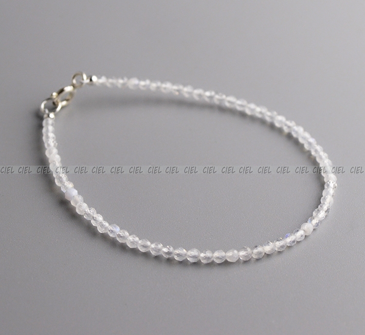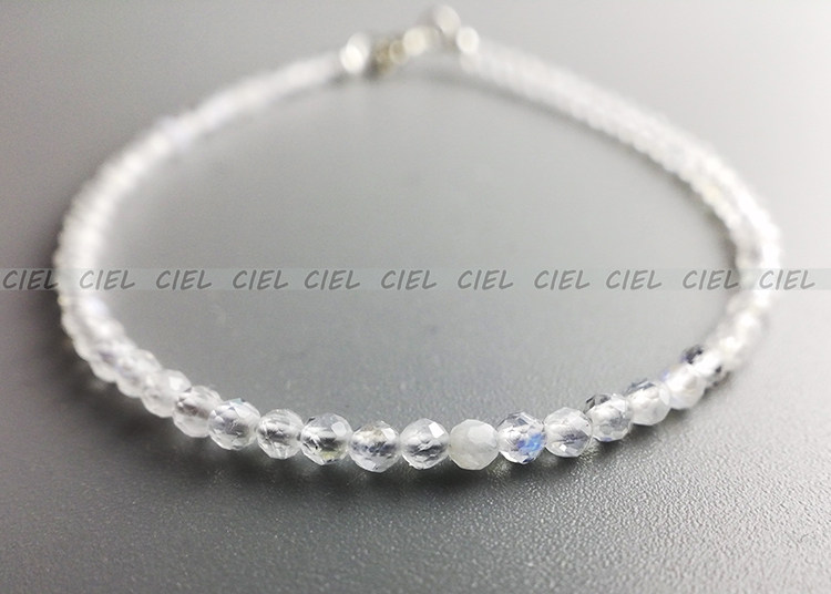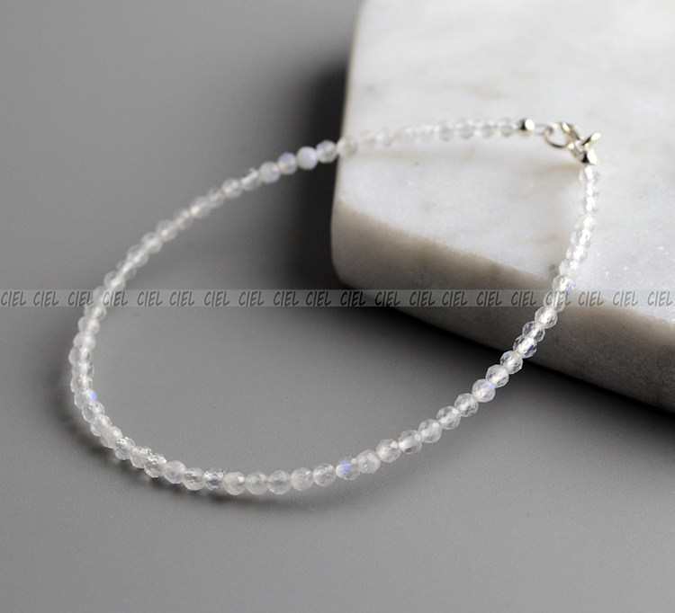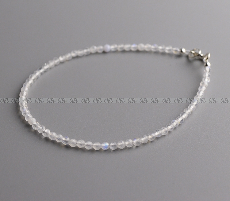 CIEL原创手工天然水晶白色蓝月光石手链极细2mm切面脚链手串补金