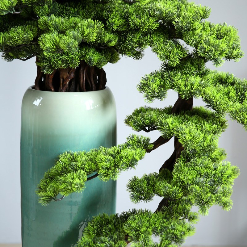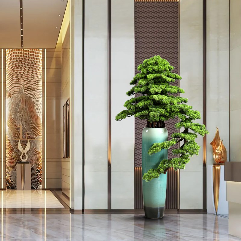客厅中式摆件落地过道盆景玄关树大型迎客松沙发旁电视柜仿真绿植