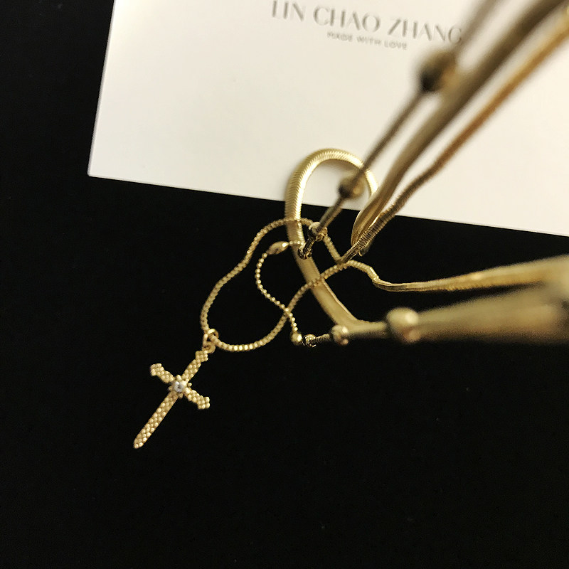 欧美网红LIN同款金十字颈链三层时髦街头 秀锁骨利器叠戴项链女