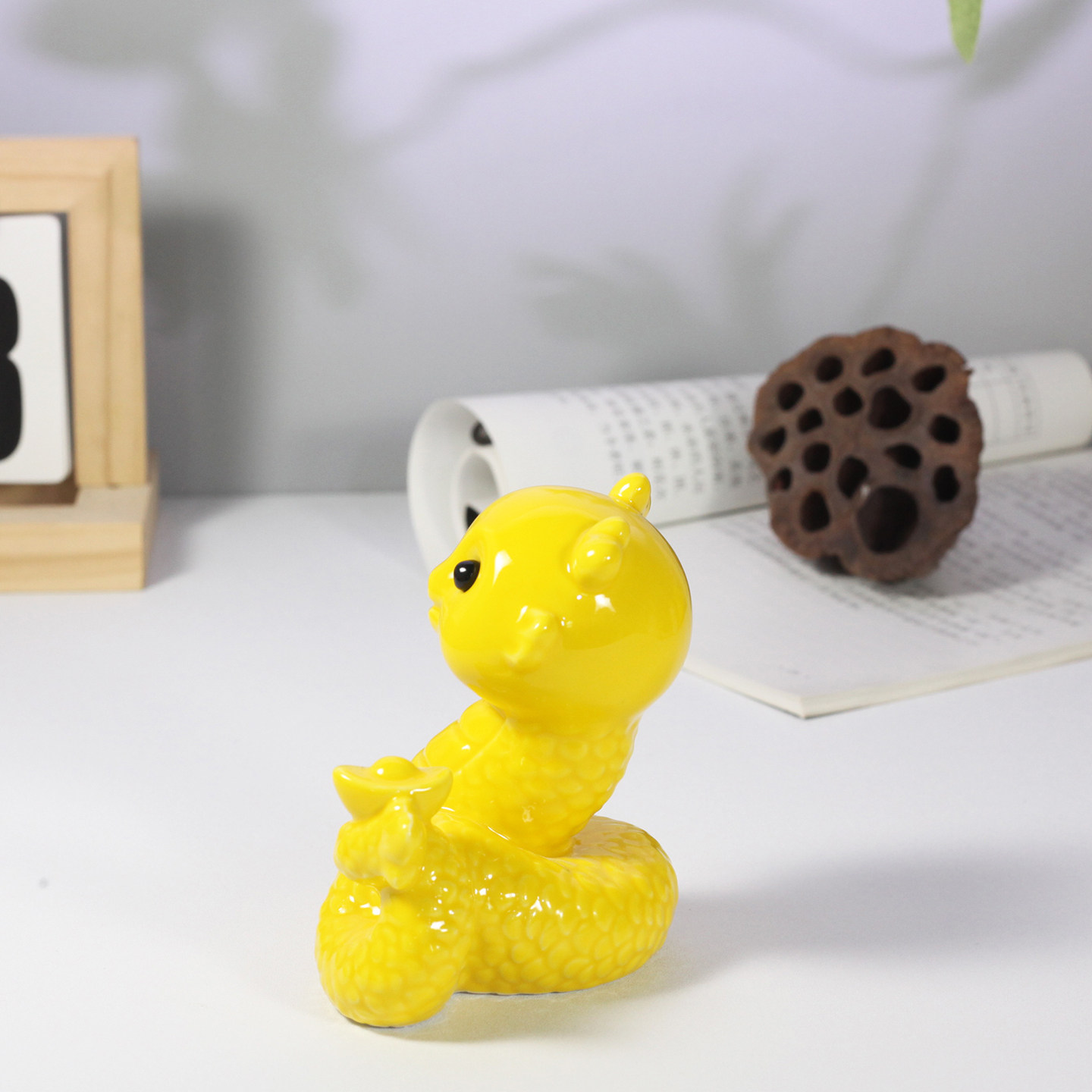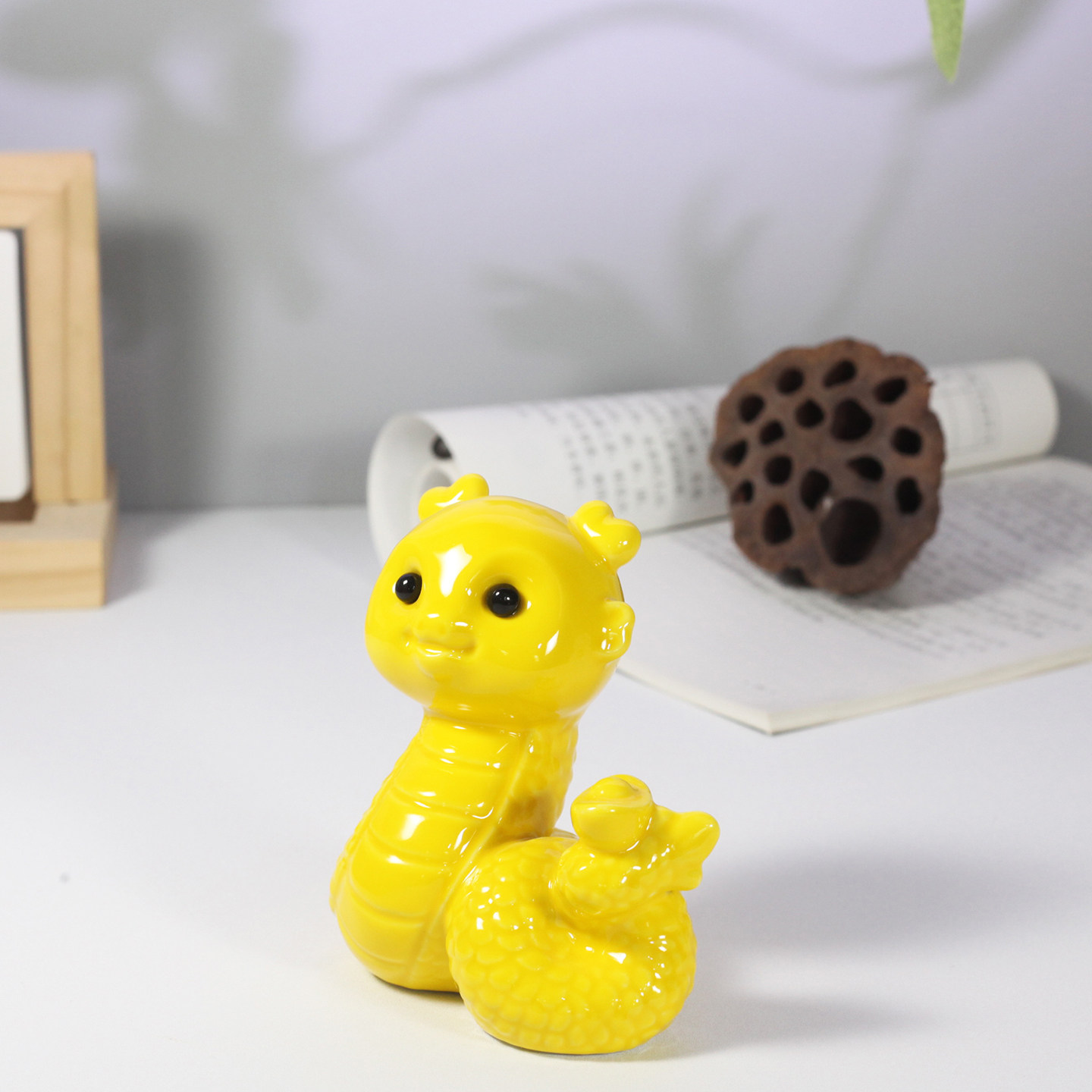 陶瓷可爱生肖蛇摆件黄色办公家居工位化解装饰品礼品工艺品小摆设