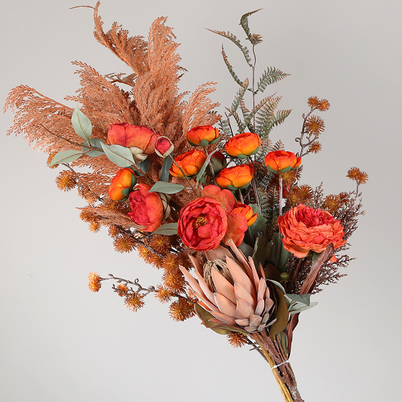秋色复古花束仿真假花客厅电视柜样板房餐桌酒店花瓶插花装饰花艺