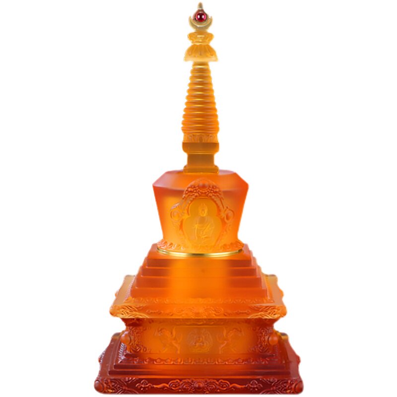 黄色古法琉璃菩提塔摆件密宗供奉塔禅意客厅琉璃舍利塔大号
