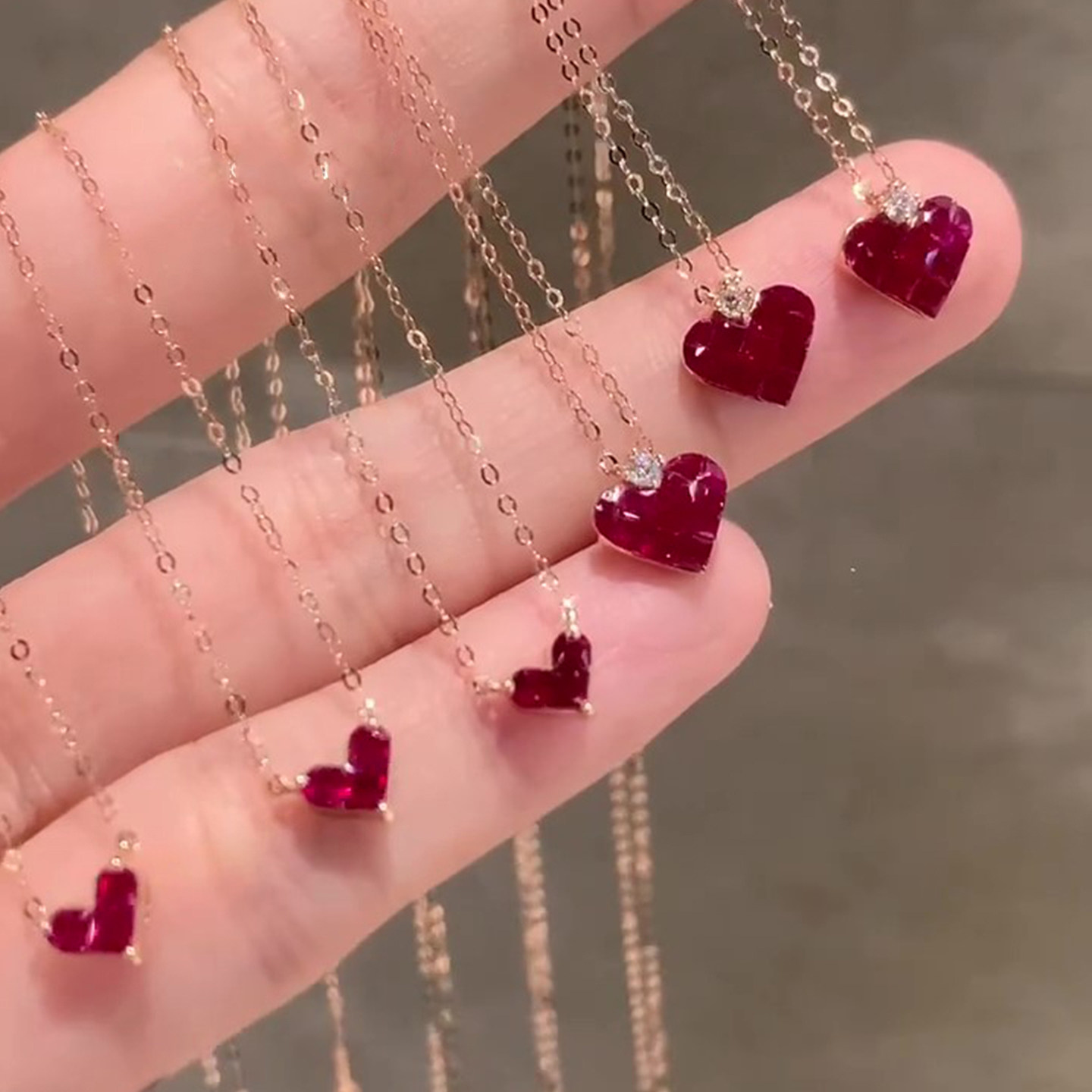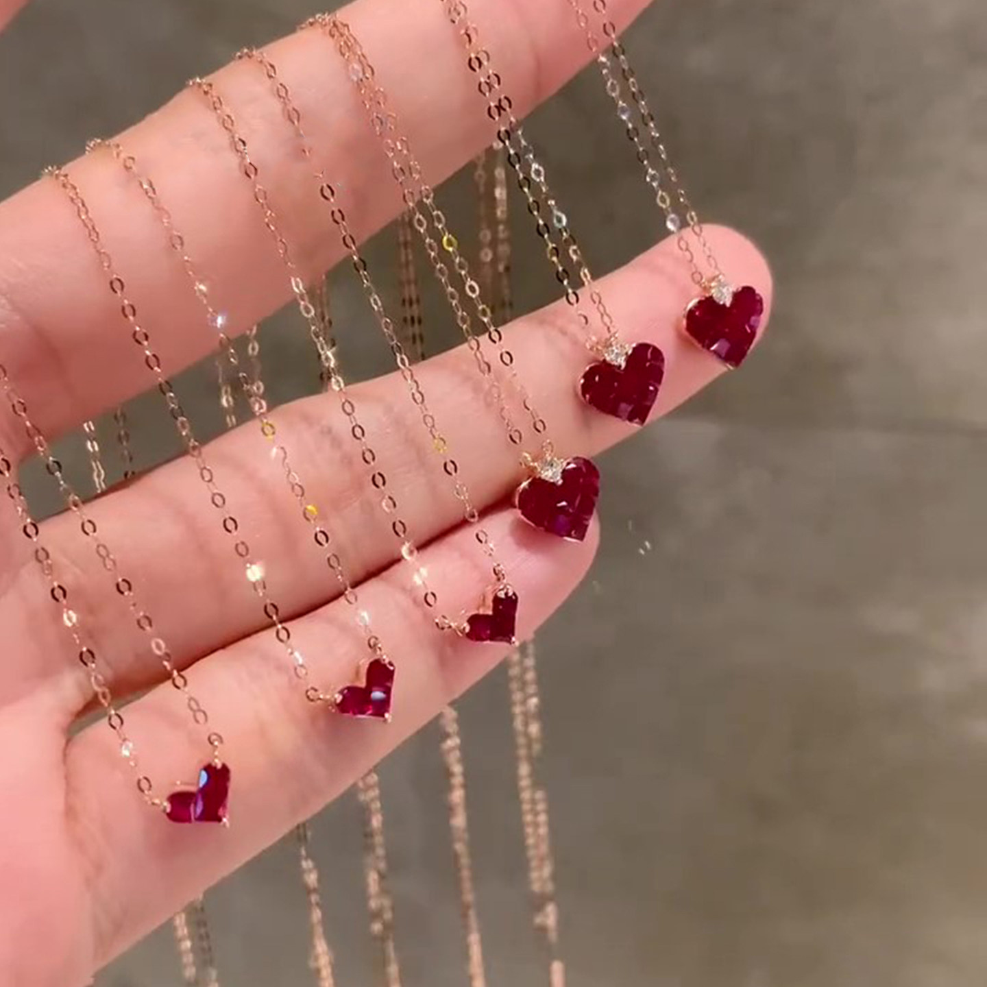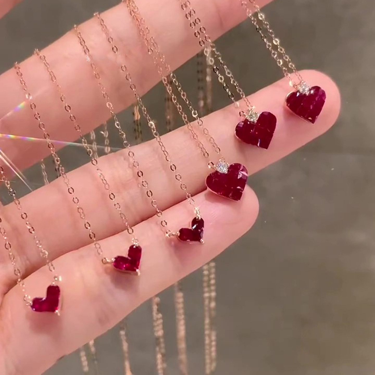 红色爱心仿锆石项链女款甜美港风轻奢小众颈链显白极细锁骨链配饰