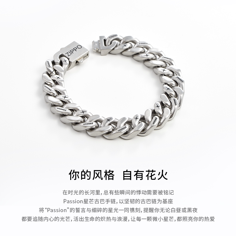 Zippo/之宝Passion星芒古巴手链男士钛钢链朋克嘻哈欧美送男友
