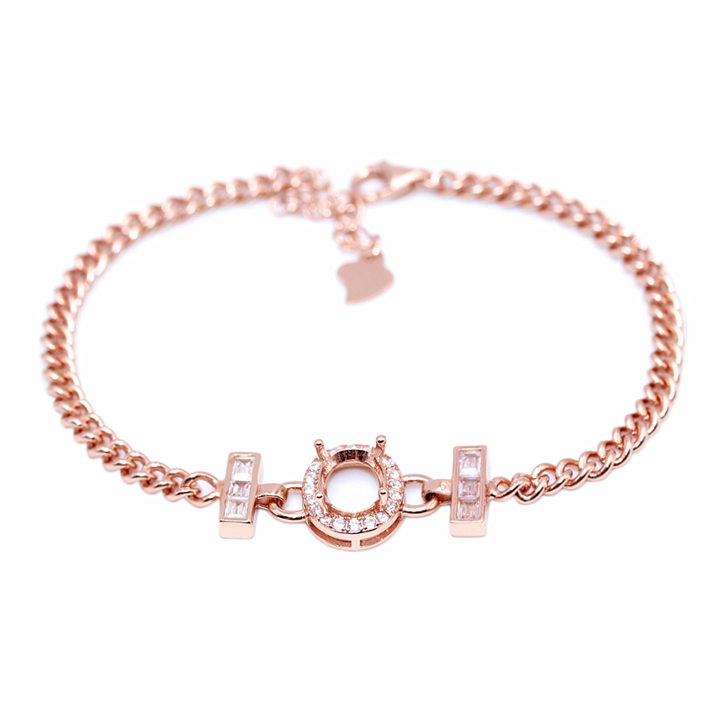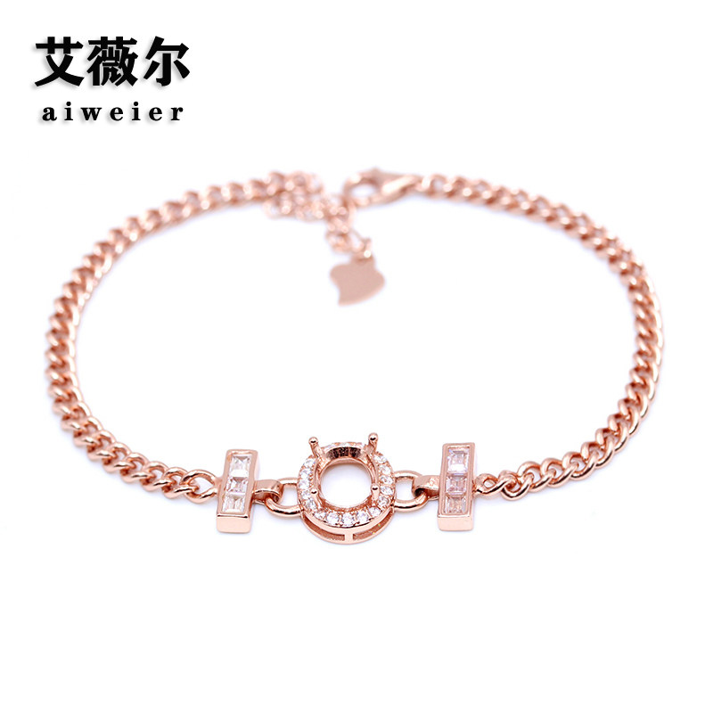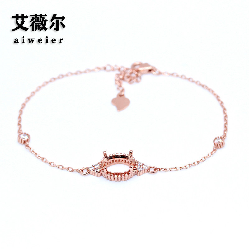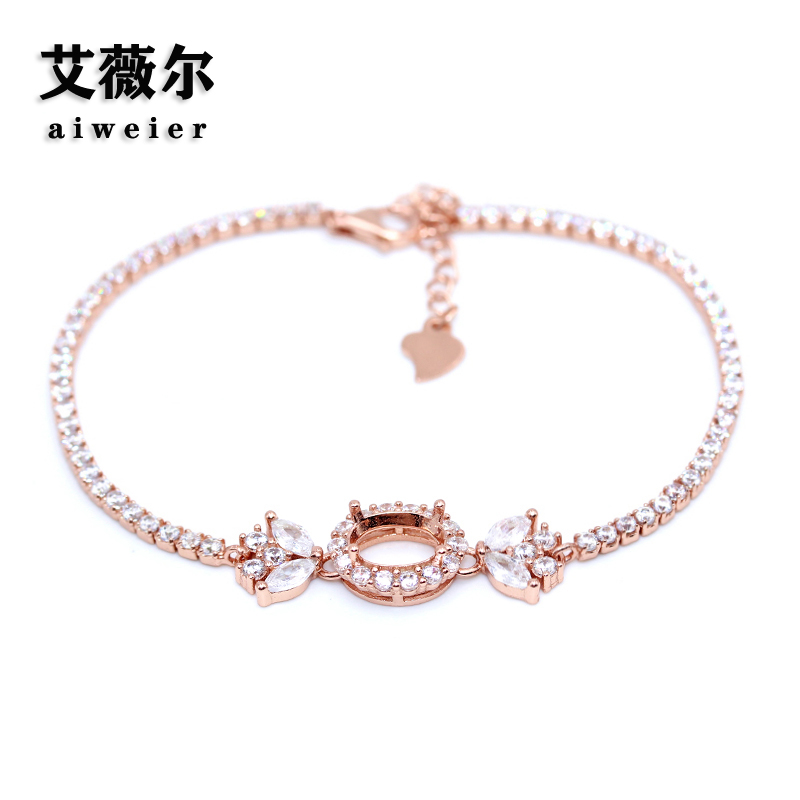 精工新款S925银镀白金手链空托玫瑰镶嵌设计定制18k金6*8-7*9mm