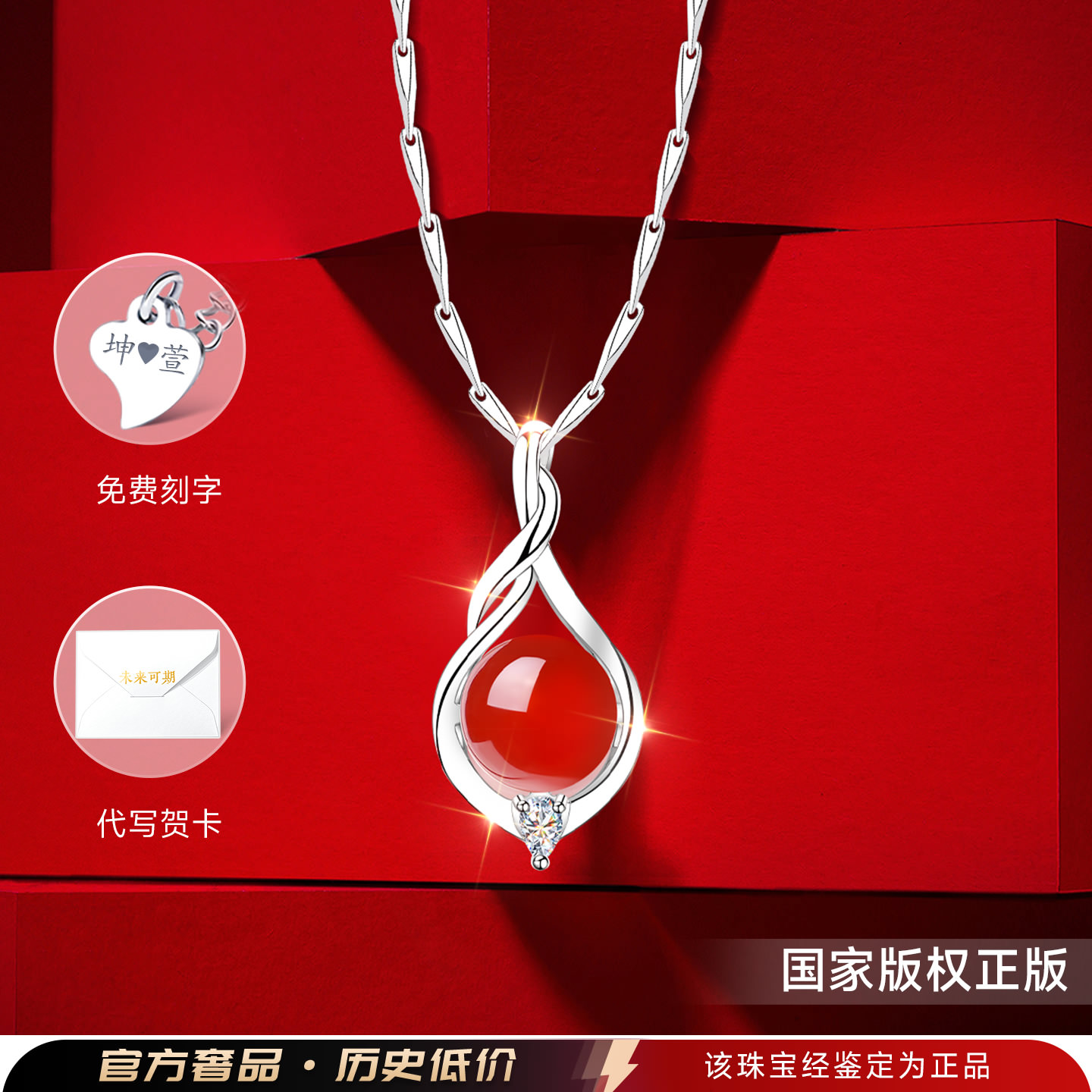 999纯银水滴银项链女款女999足银女士妈妈款红玛瑙红色吊坠送妈妈