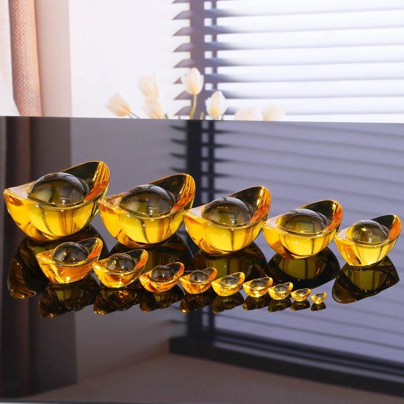 水晶元宝黄水晶琉璃招财开业金元宝礼品摆件聚宝盆米缸鱼缸摆件