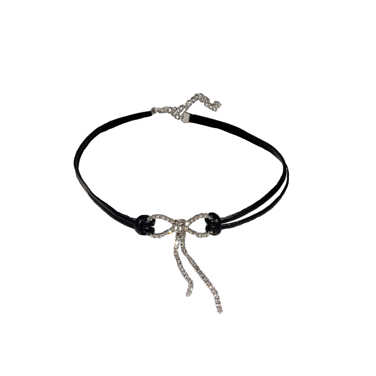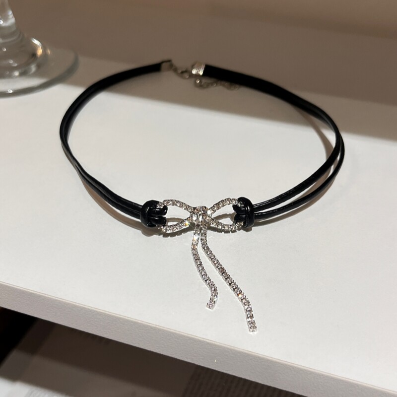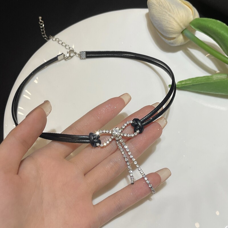 项链女黑色蝴蝶结微镶锆石甜酷辣妹气质百搭颈链轻奢流苏款锁骨链