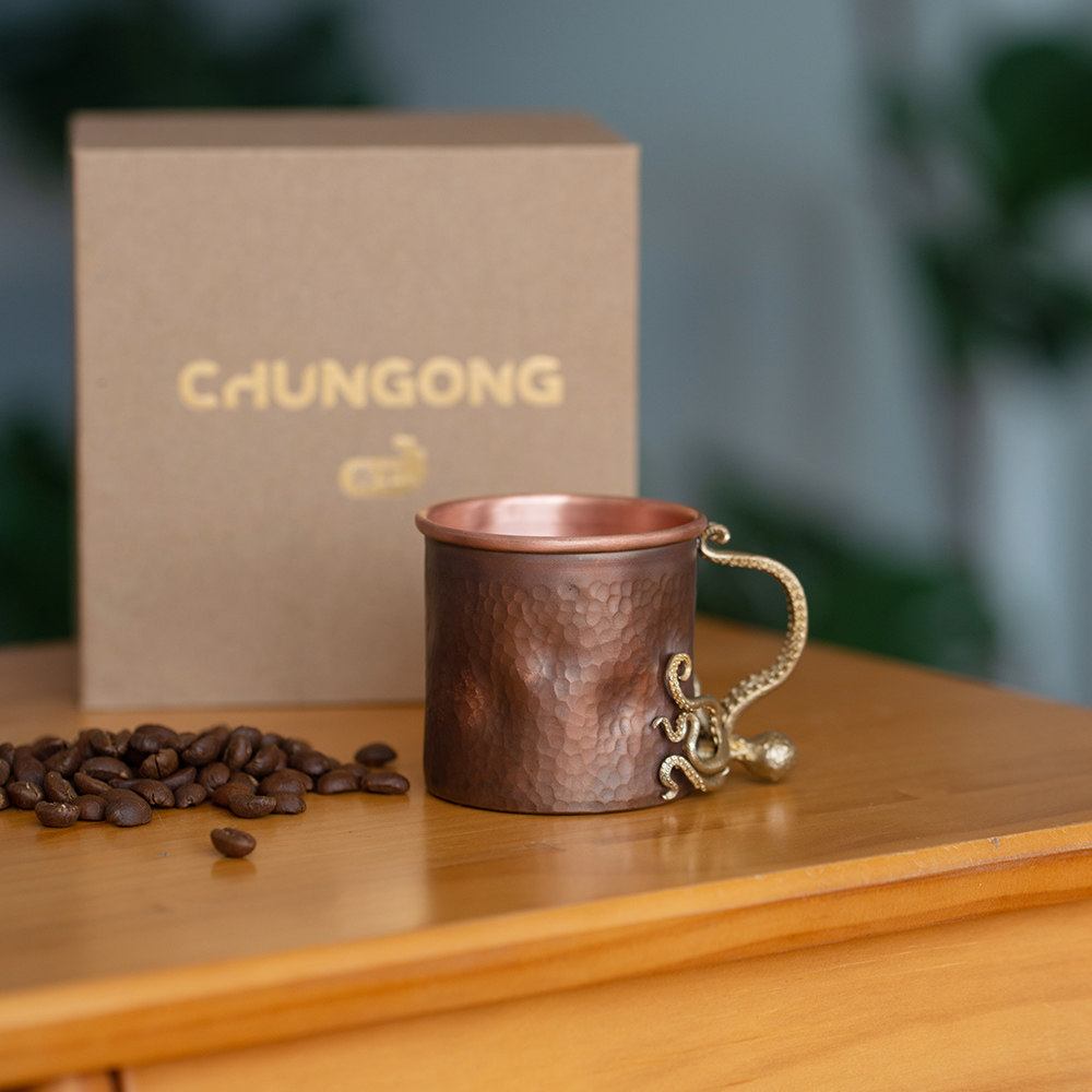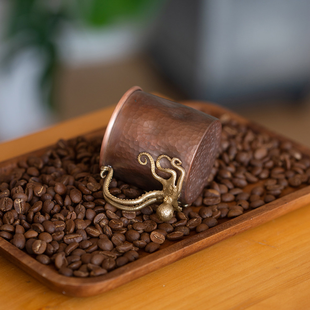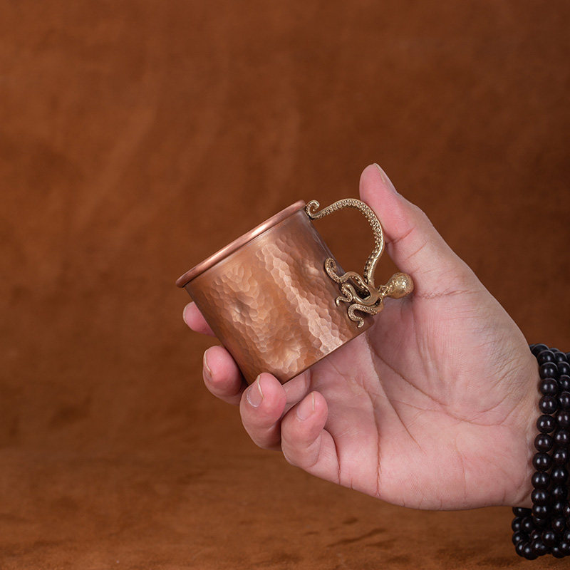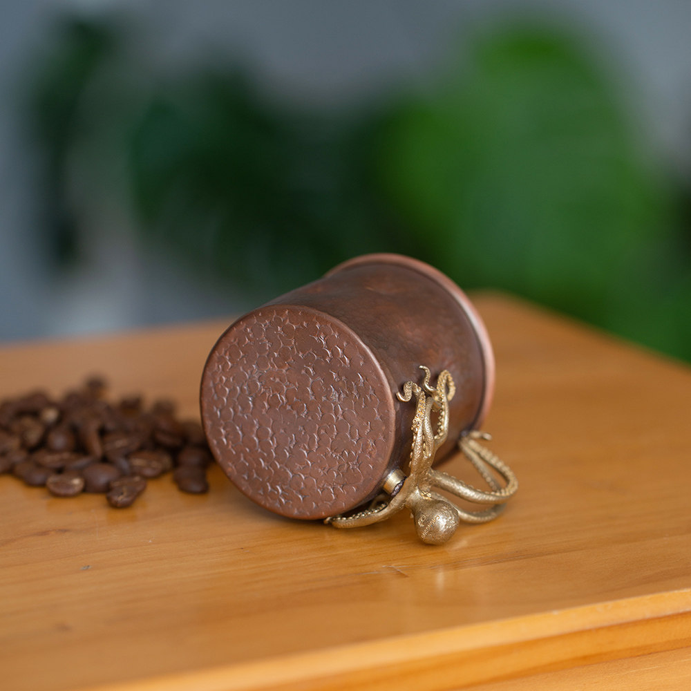 春工复古紫铜杯章鱼高端杯子150ml咖啡杯手工锤纹创意摆件礼盒