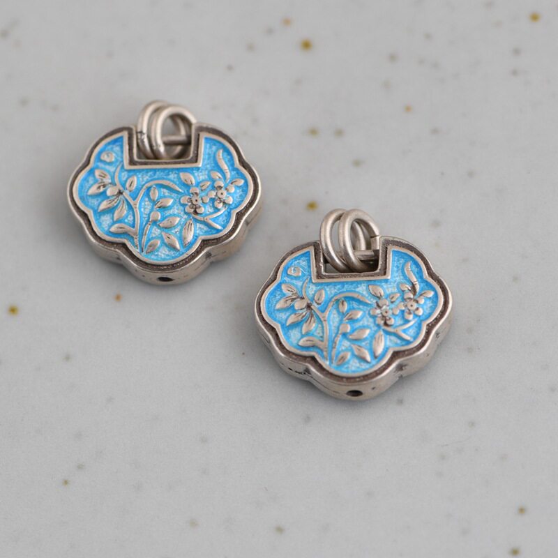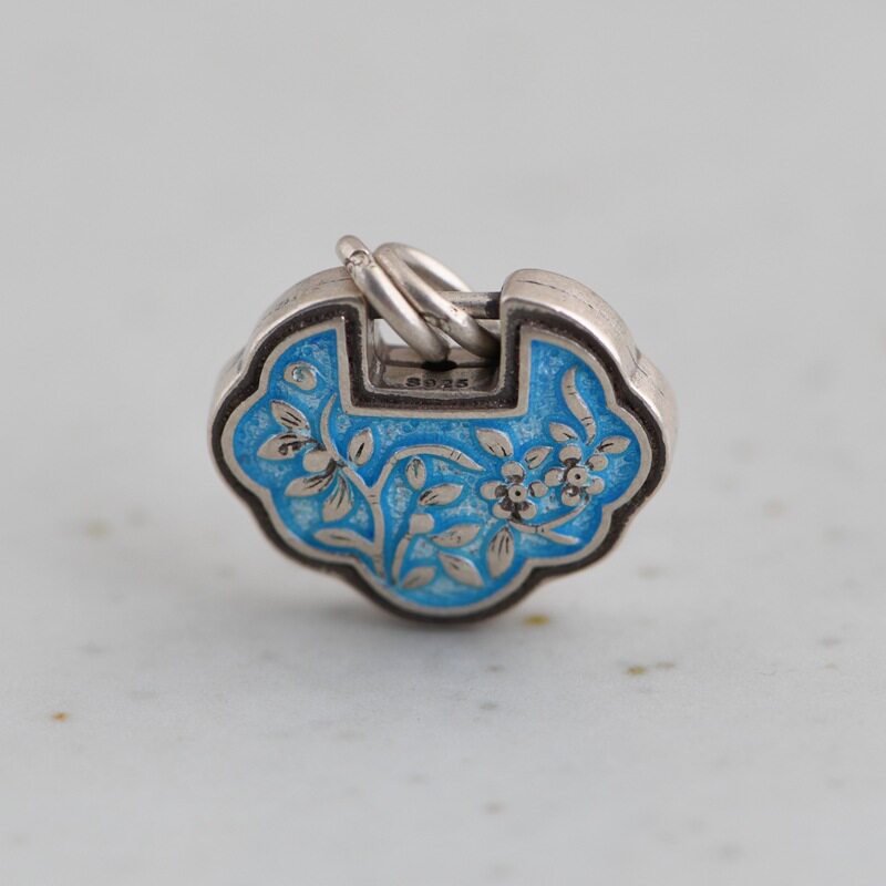 古银铺S925纯银烧蓝工艺吊坠女款中式民族风宫廷范双面长命锁项坠