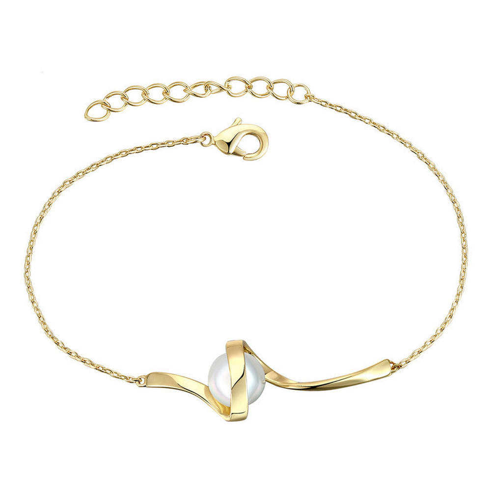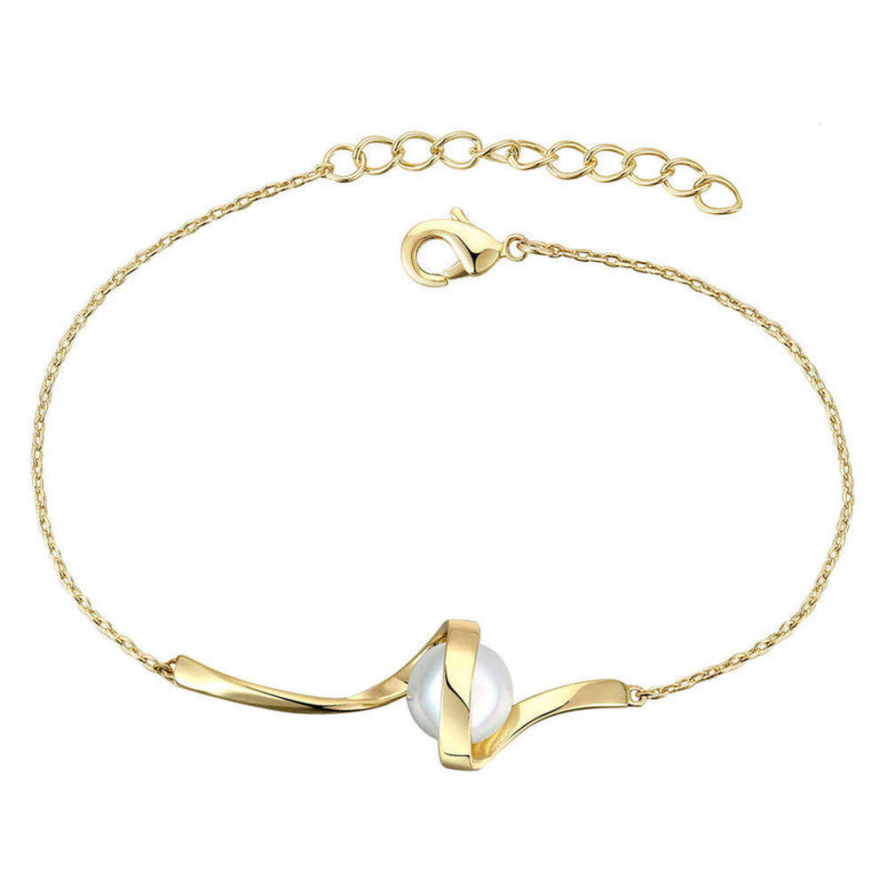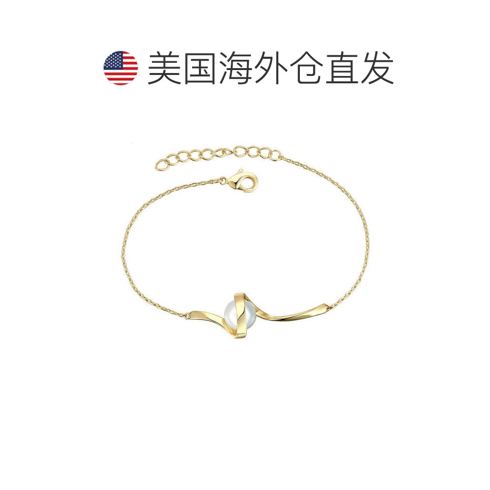 自营genevive纯银 14K 镀金配 7 毫米白色淡水珍珠可调节分层手链