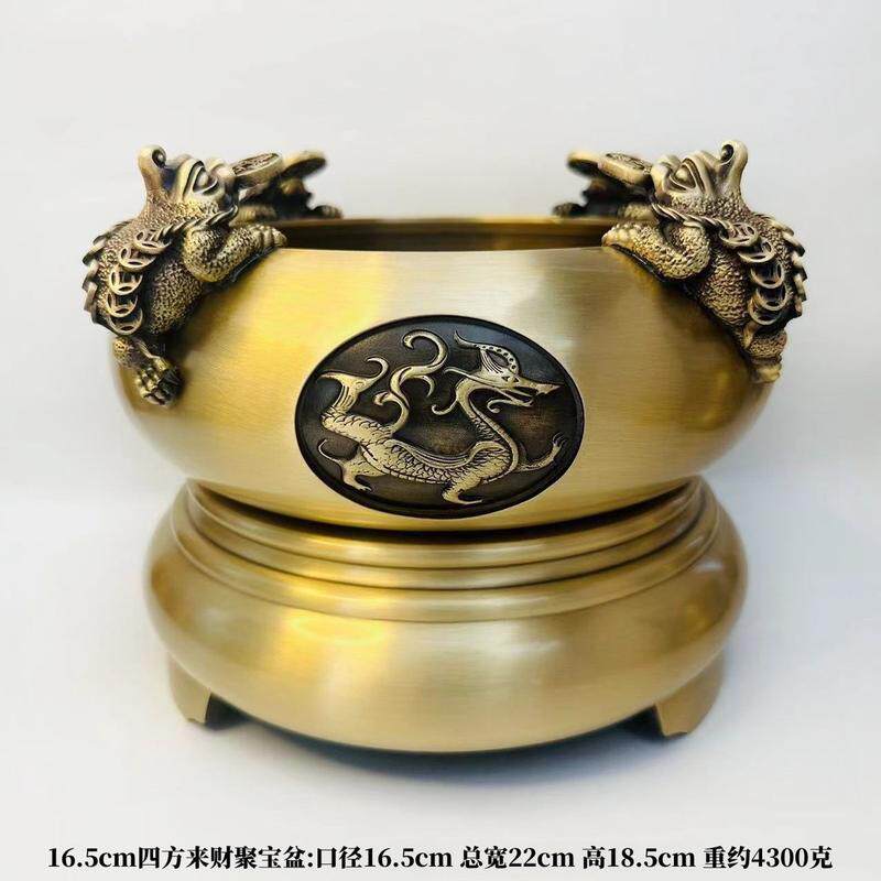 四方四神兽《黄铜来财》金蟾聚宝盆摆件家居办公前台礼品厂家直销