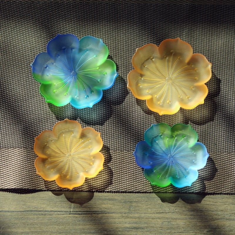 琉璃莲花茶杯杯托茶托高端彩色茶垫杯垫摆件底座绿色茶杯垫果盘垫