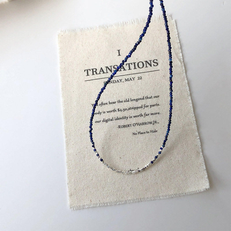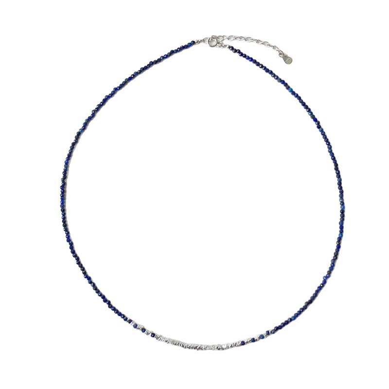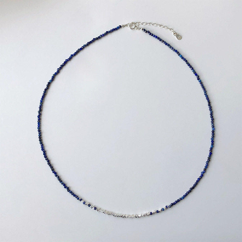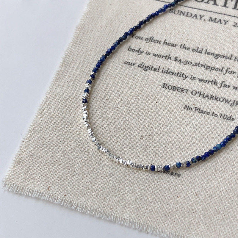 S925纯银碎银子青金石项链女渐变蓝色串珠锁骨链小众精致百搭通勤