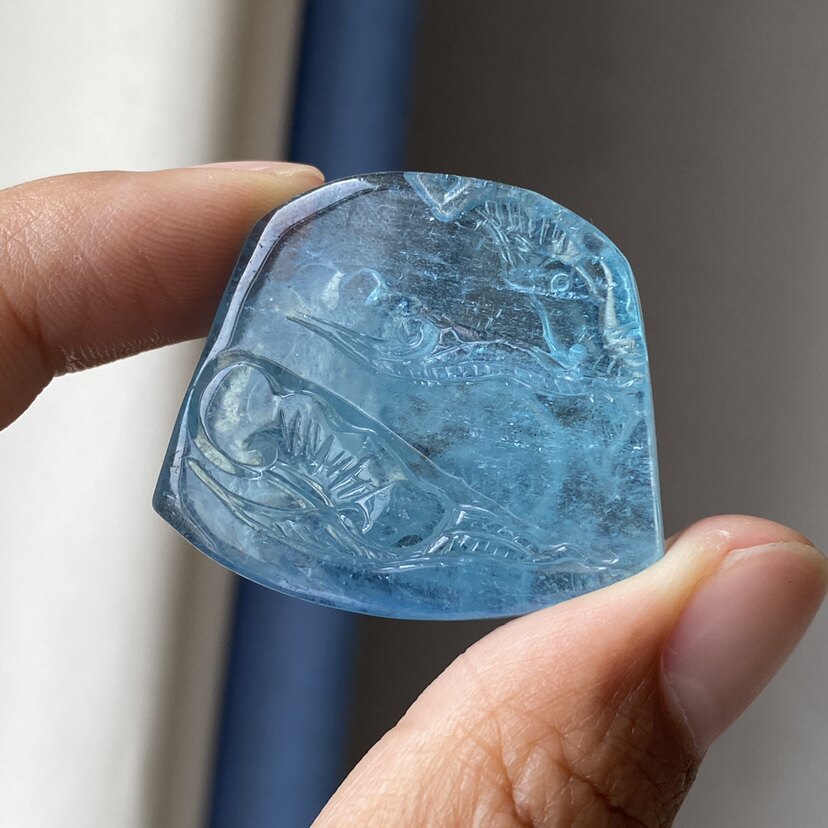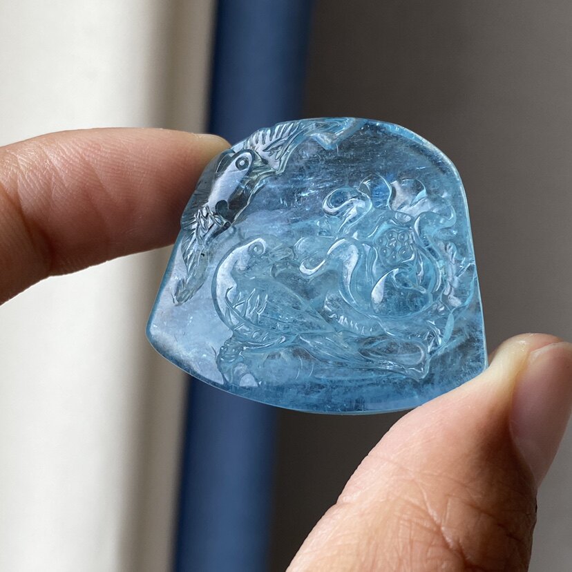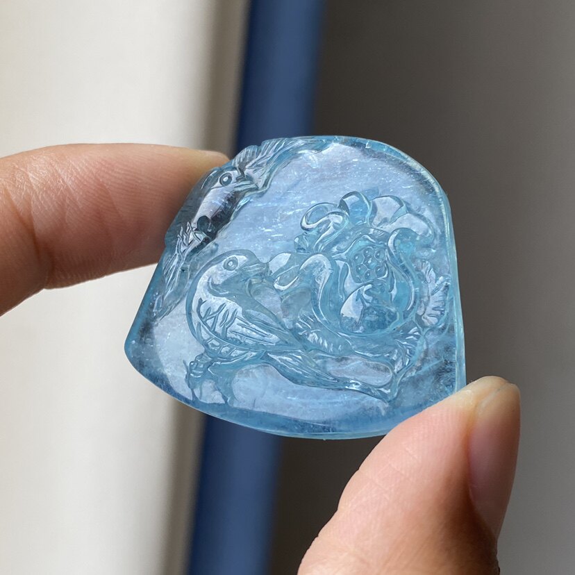 保真大号天然海蓝宝喜鹊吊坠蓝色喜上眉梢花女水晶项链挂件冰种蓝