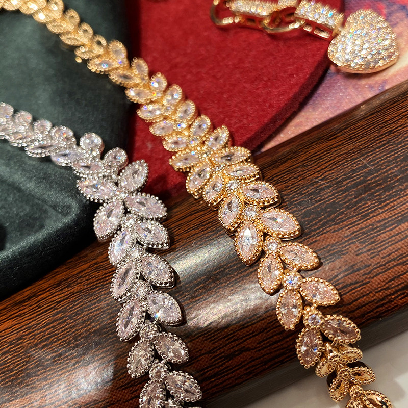 定制款小众奢华橄榄枝手链橄榄叶树叶手饰品链条爱心吊坠手链锁扣
