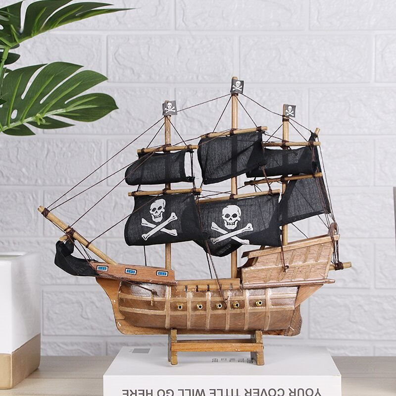创意实木黑色小号海盗船模型一帆风顺帆船摆件男孩儿童房桌面摆设