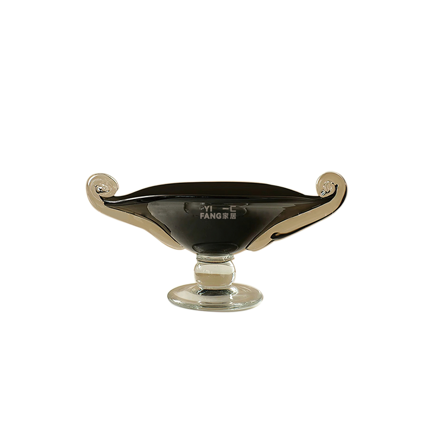 一匚 现代轻奢玻璃酒具水具马毛托盘组合 样板间餐厅酒柜装饰摆件