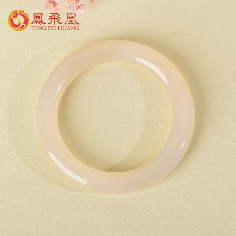 凤飞凰56.5mm和田玉藕粉手镯女款玉镯正品玉石镯子送女朋友礼物D