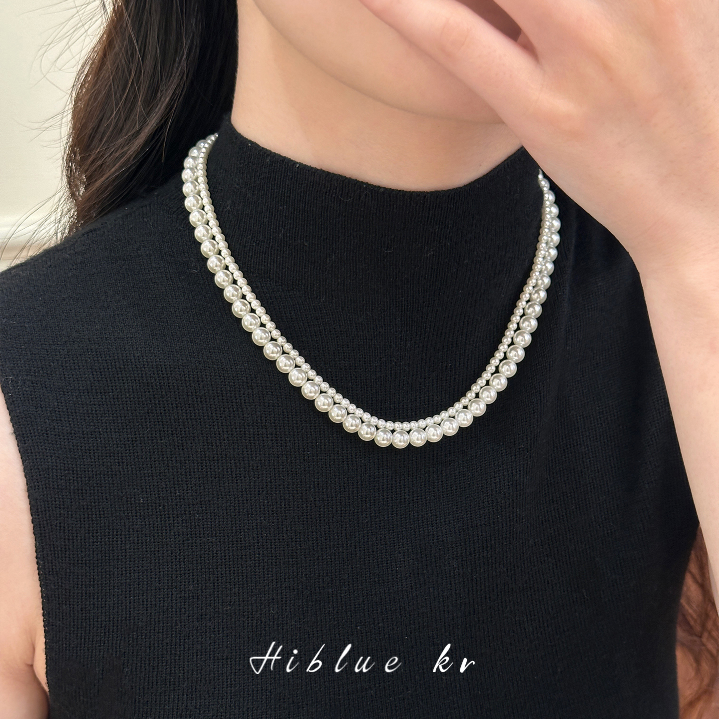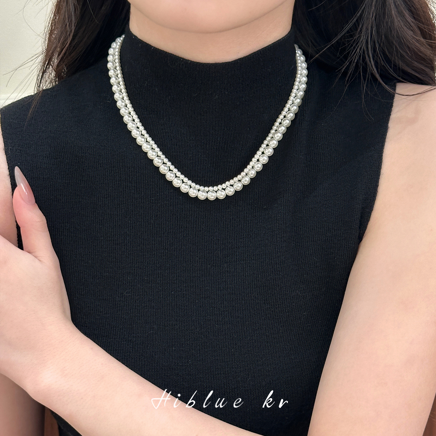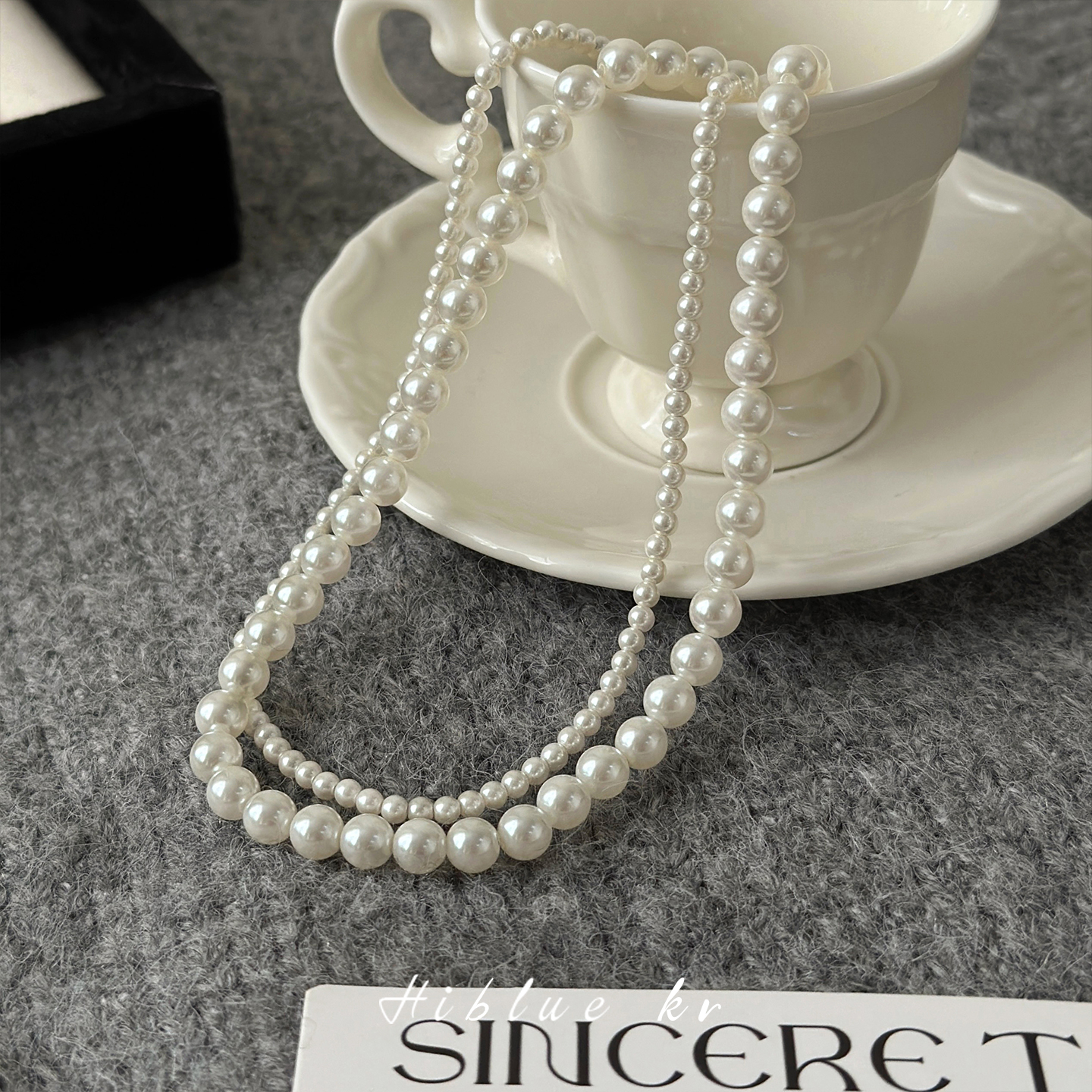 许我耀眼赵露思同款双层澳白色珍珠项链女轻奢小众高级颈链毛衣链