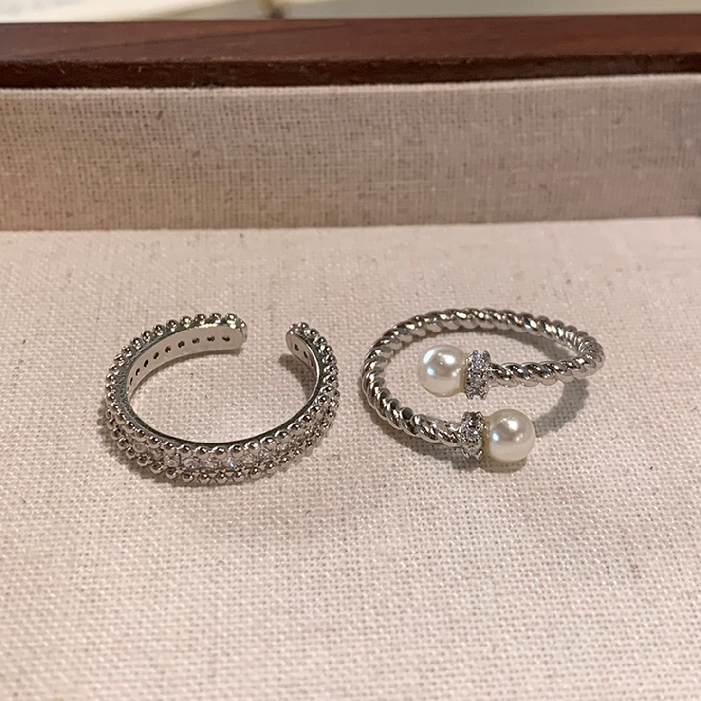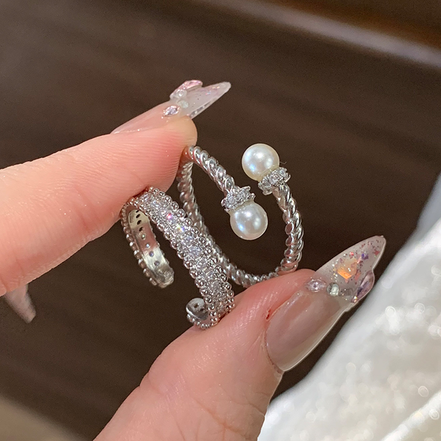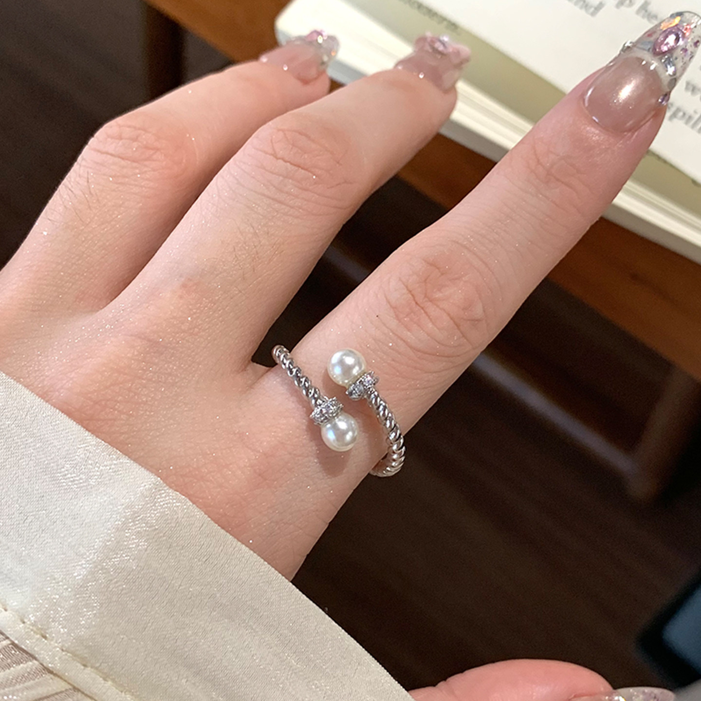 高级感交叉珍珠戒指女小众设计开口素圈戒指2025新款爆款尾戒指环