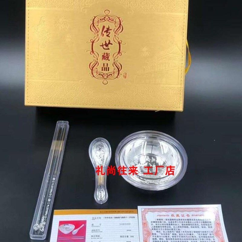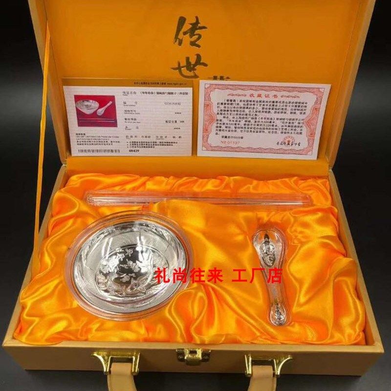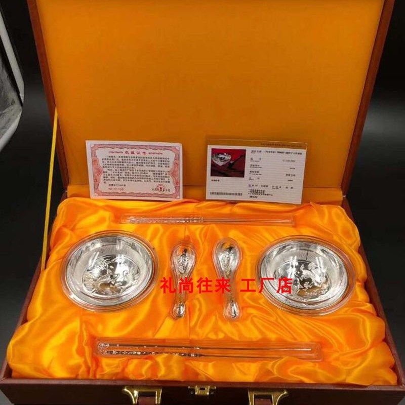 五福临门银碗筷勺子6件套装保险会销皮盒装高档礼品会销随手礼