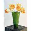 中古四叶草绿色手工琉璃白菜花瓶玄关餐桌客厅复古花器新中式摆件