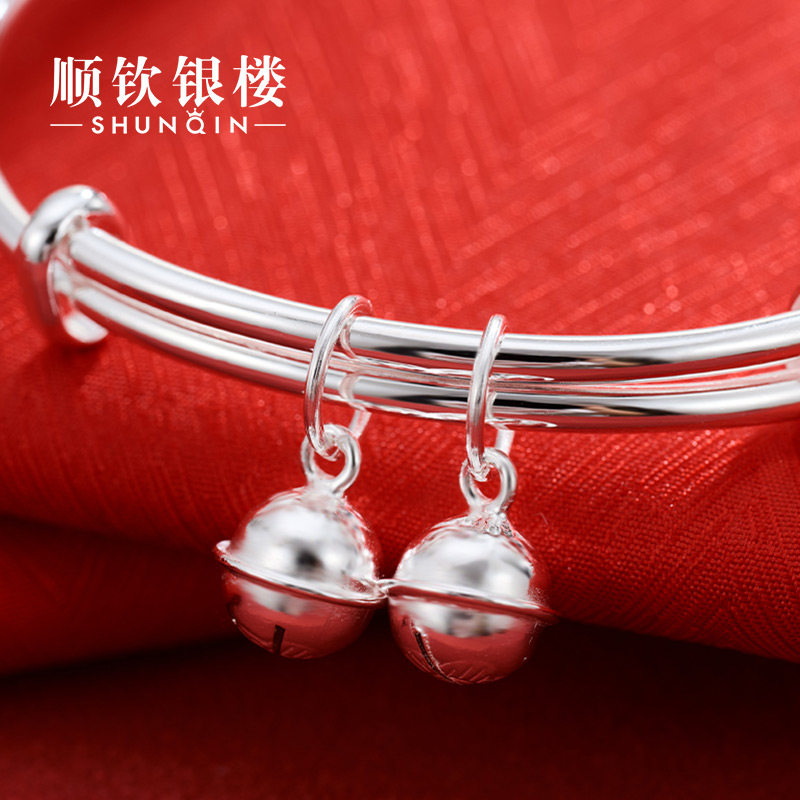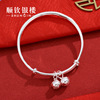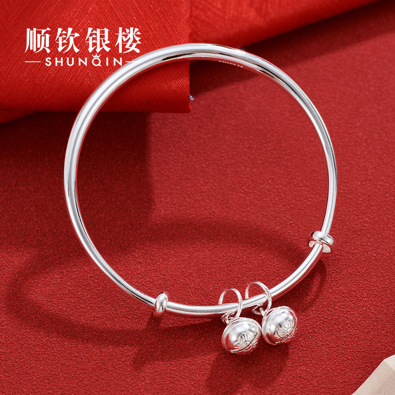 顺钦银楼S9999足银手镯双铃铛银手环纯银镯子国潮送女友生日礼物