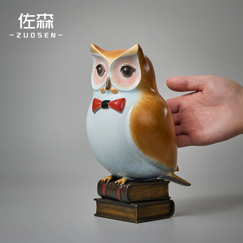 佐森铜猫头鹰摆件家居玄关客厅展示柜桌面装饰橱窗动物鸟工艺品