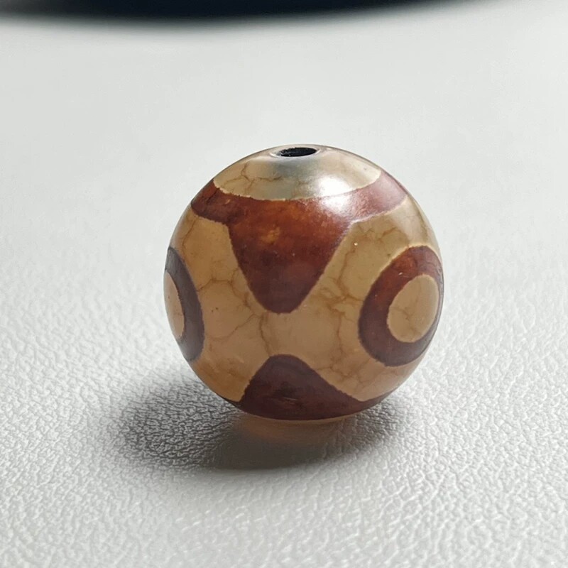 西藏老矿原石真品包浆三眼玛瑙天珠圆形单珠配珠珠径20MM