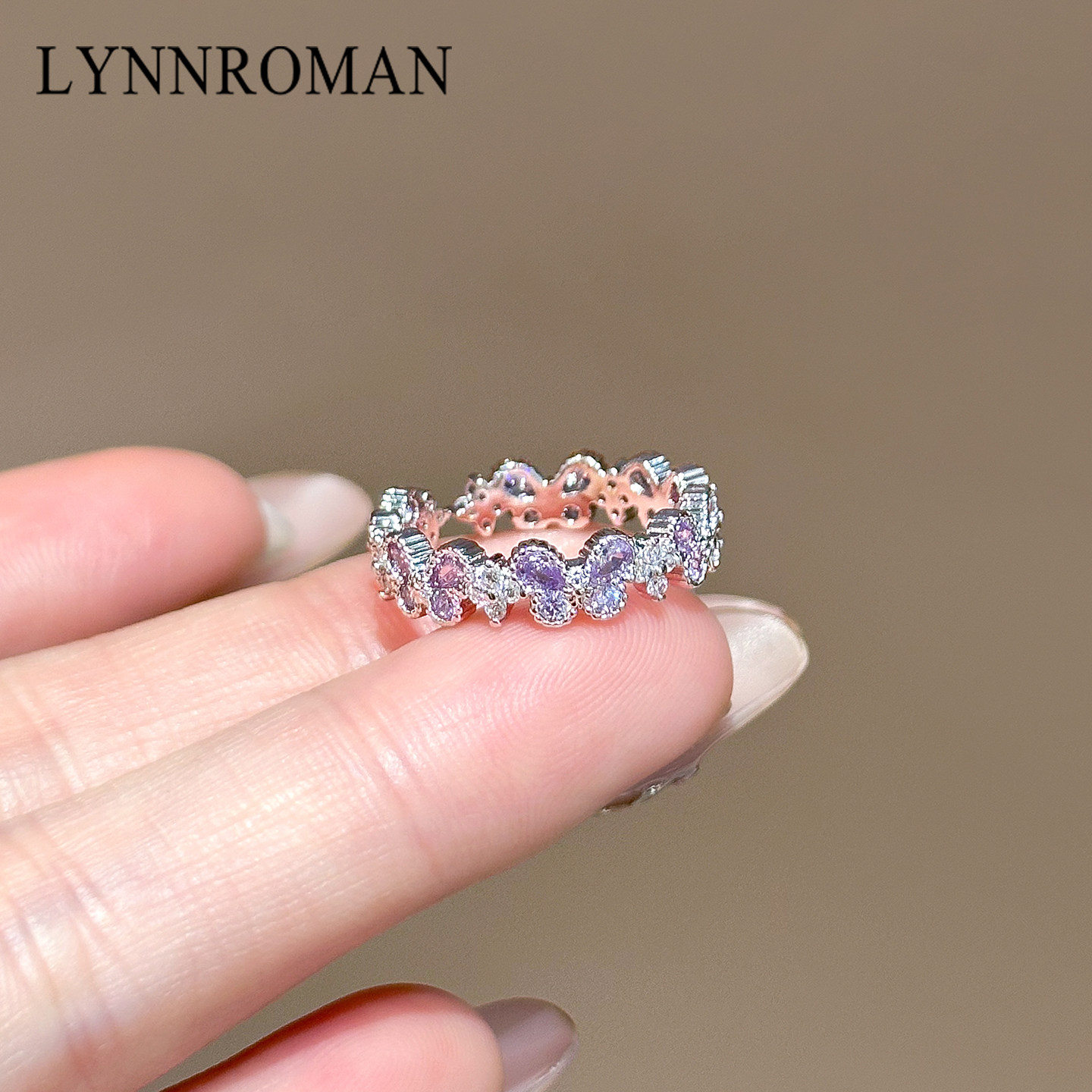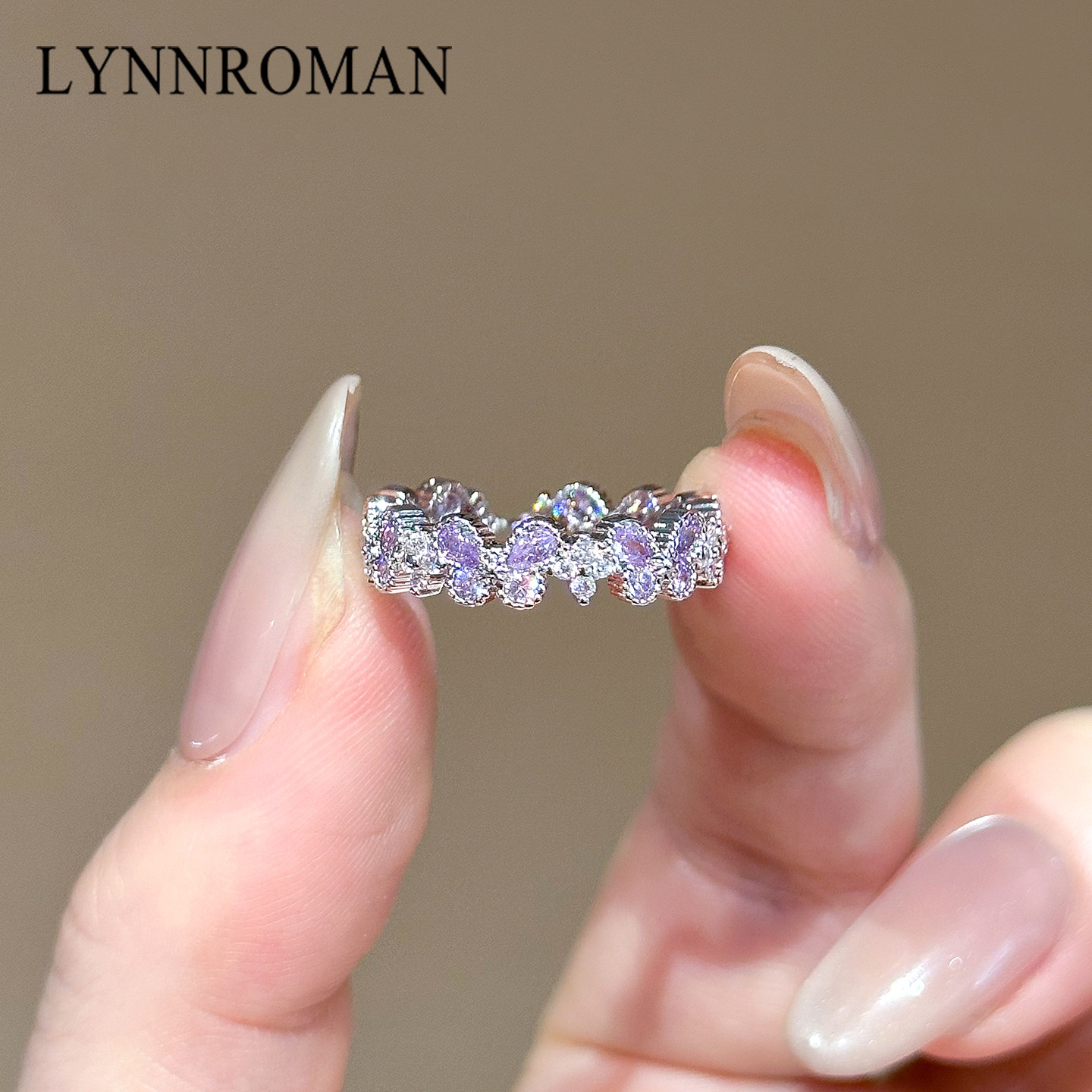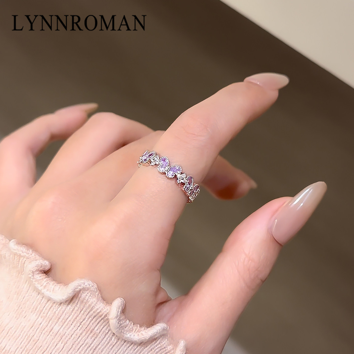 LYNNROMAN轻奢紫色水晶蝴蝶戒指女小众设计开口食指戒高级感指环