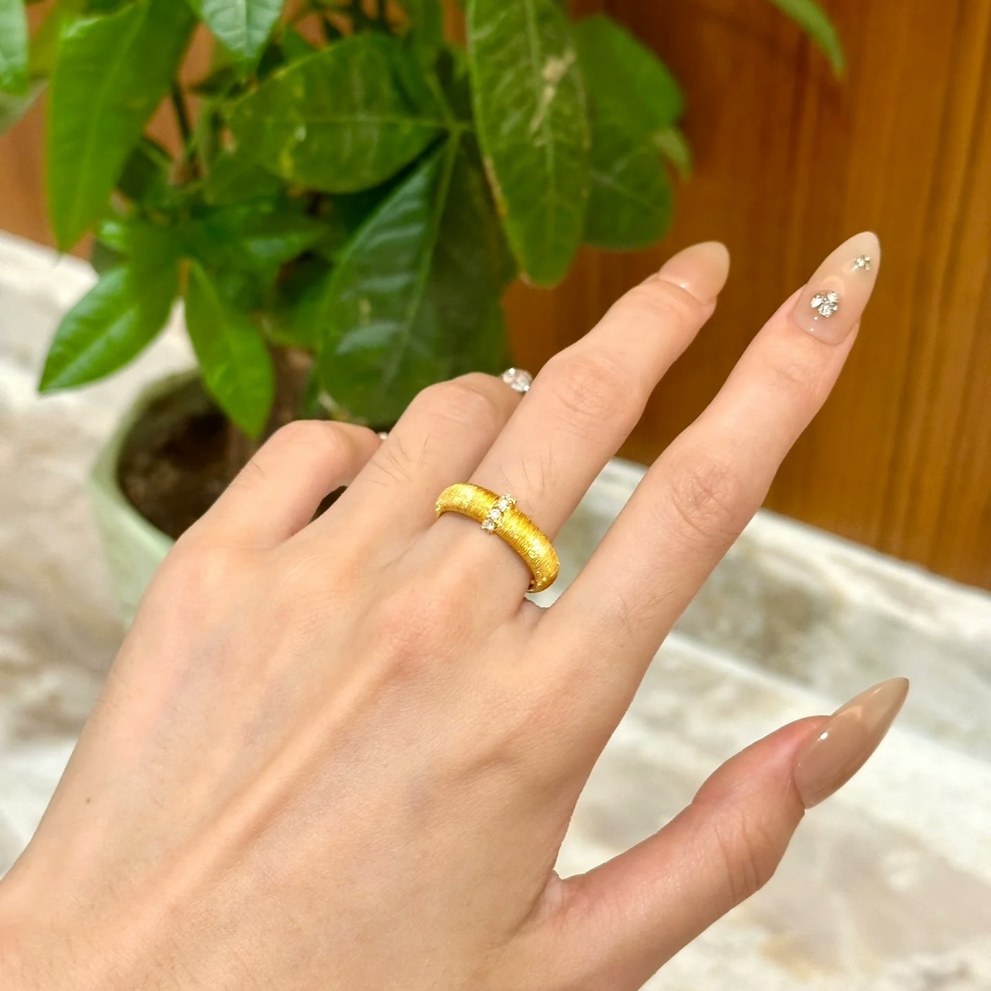 金店同款沙金仿真金拉丝点钻缎面戒指女款轻奢高级感指环送女友