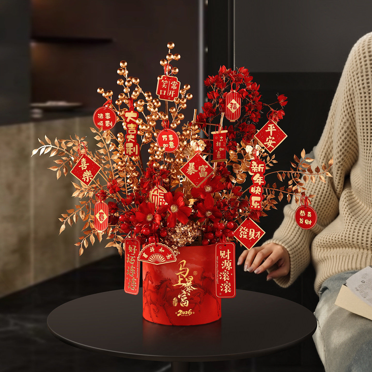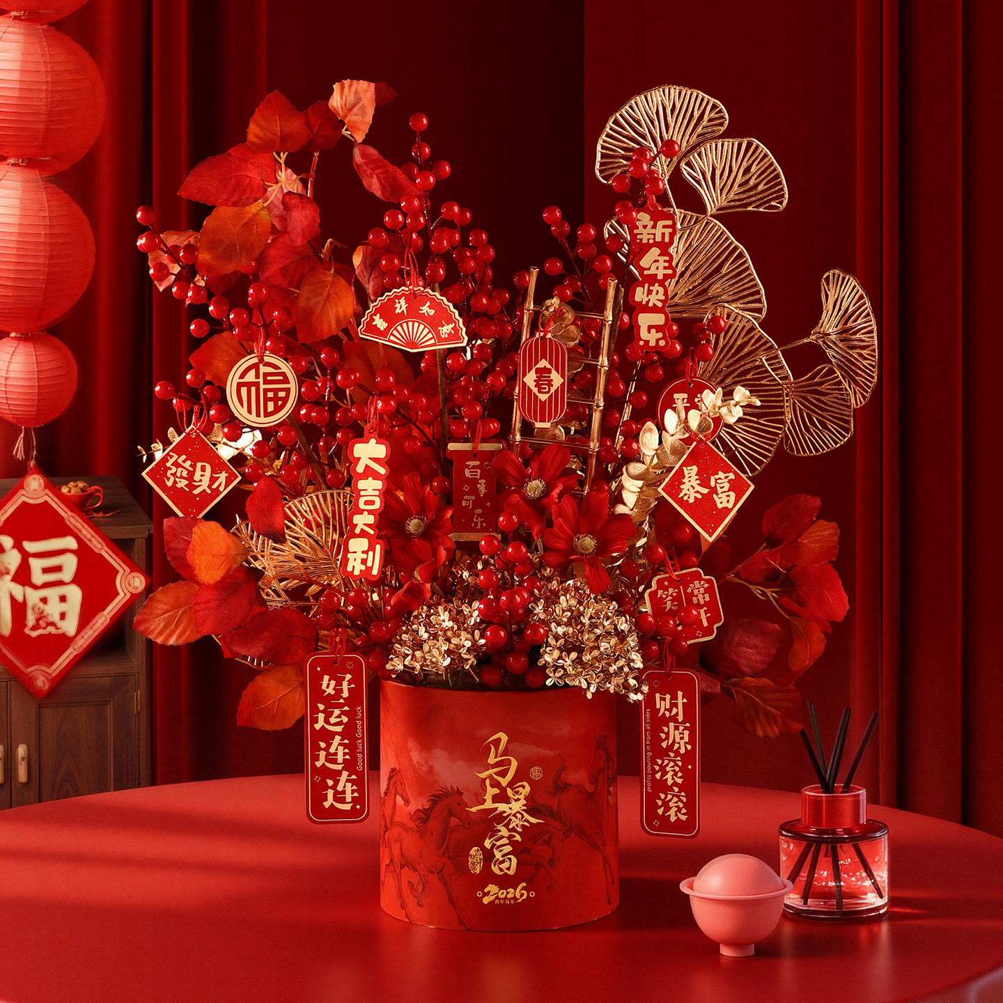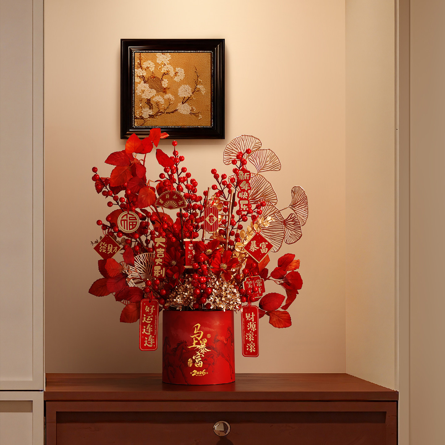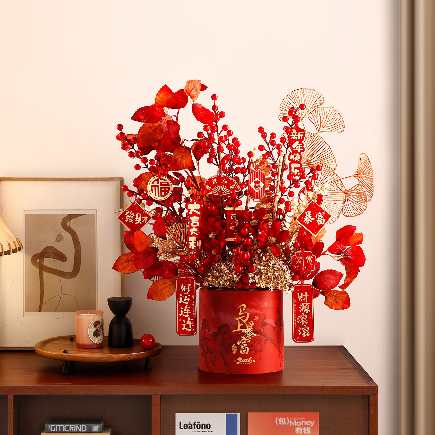 新房装饰品摆件马年吉祥物氛围感红色客厅高档福桶乔迁新居抱抱桶