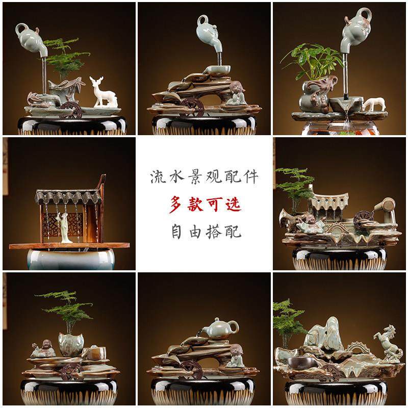 陶瓷自动循环流水鱼盆鱼池鱼缸流水搭配喷泉瀑布造景配件装饰摆件