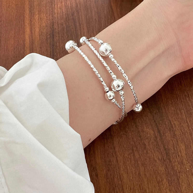 S925纯银多圈银手镯女高级感手链小众设感手饰时尚个性手串冷淡风