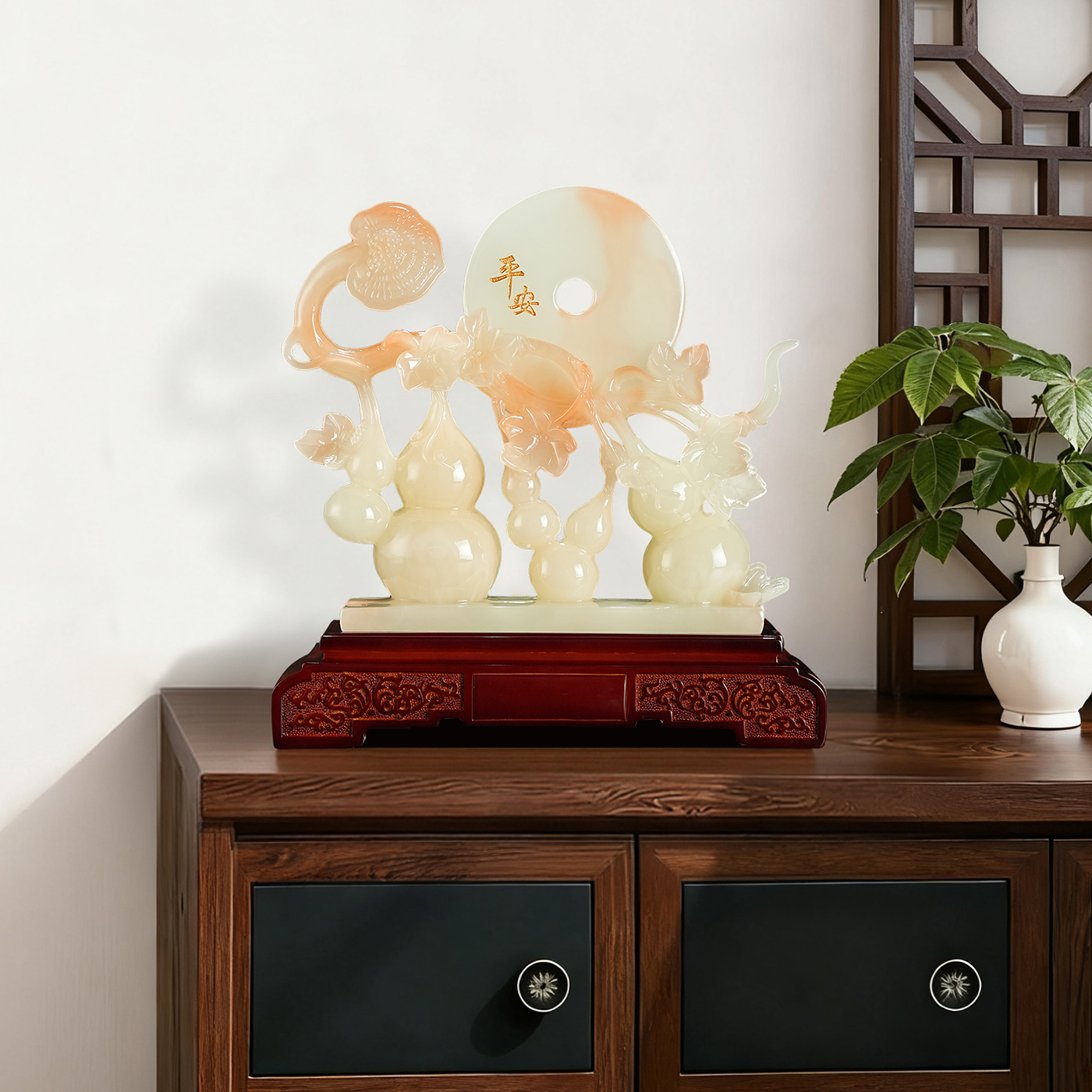 五福临门葫芦摆件玉石平安扣中式家居客厅玄关酒柜装饰品乔迁礼物