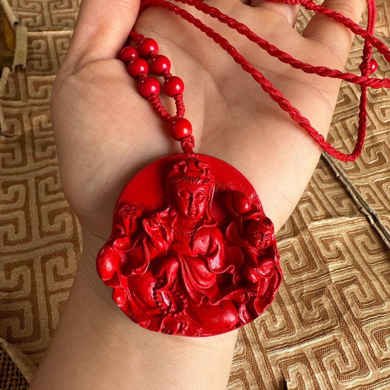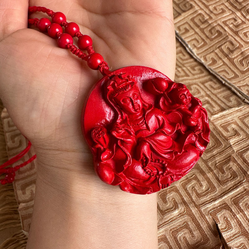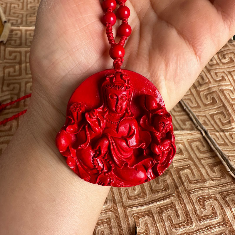送子观音挂件天然朱砂求子得子观世音玉佩项链男女钥匙扣玉石吊坠