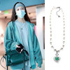 宋妍霏同款珍珠项链绿色爱心吊坠2020新款国潮网红深钻锁骨链项圈