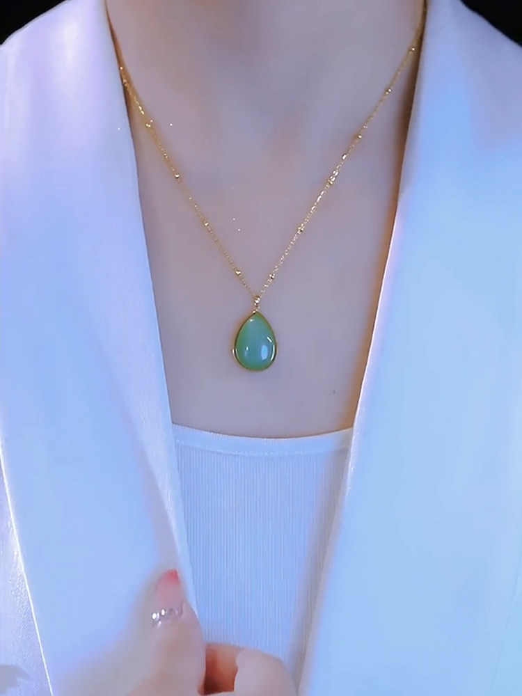 绿水滴吊坠项链小众设计感锁骨链网红高级感简约时尚轻奢气质颈链