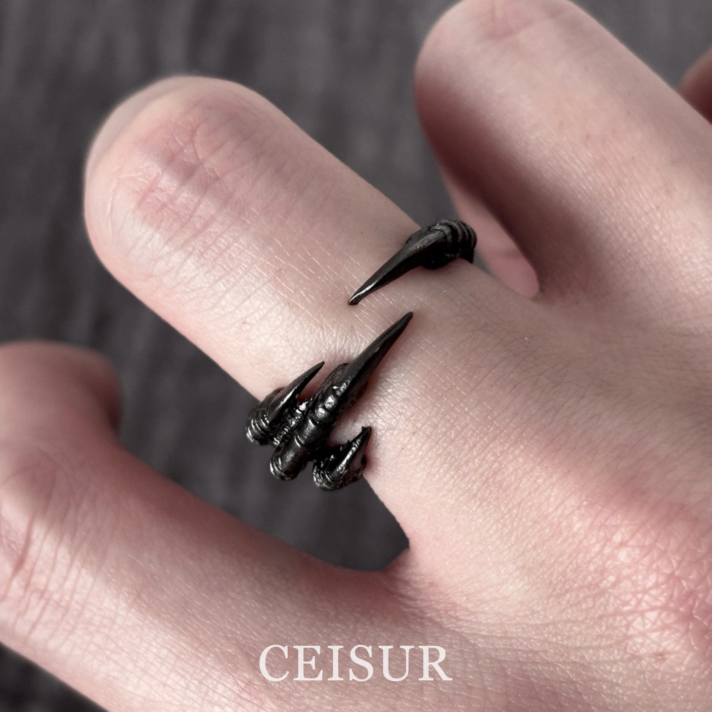 暗黑哥特风黑色鹰爪戒指女个性百搭开口尾戒指环小众设计感食指戒