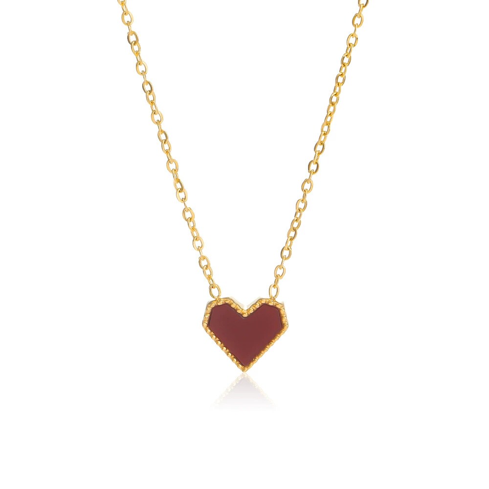 法式摩登风爱心锁骨链复古红色桃心百搭项链女真金电镀不锈钢首饰