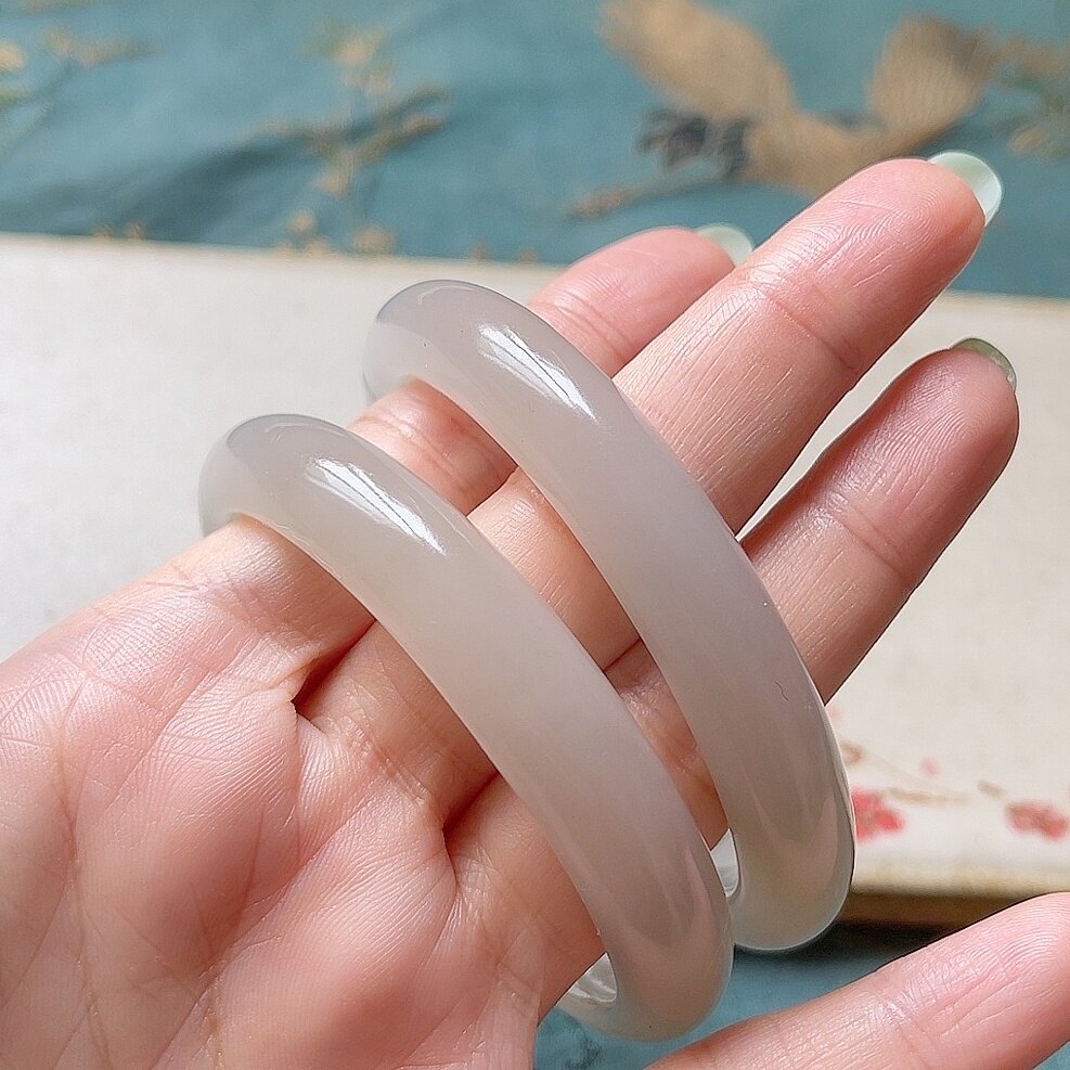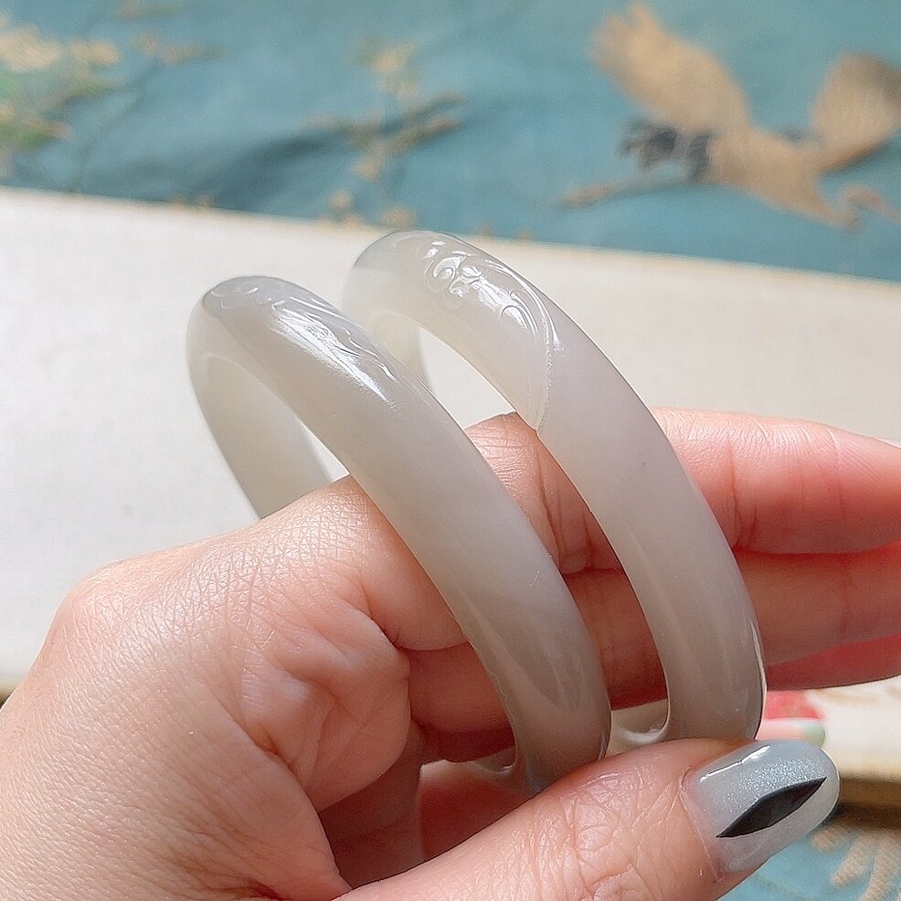 烟罗 天然和田玉艳紫色老料雕花泥鳅背正装手镯 温润细腻清爽款