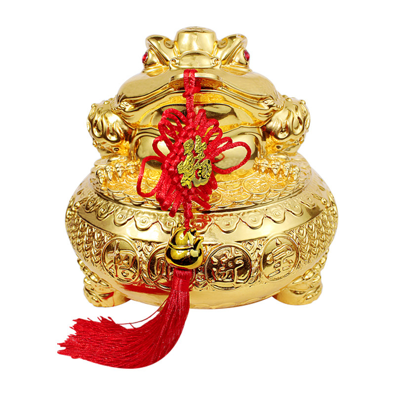 24k金蟾招财摆件客厅三足铜金蟾蜍家居黄铜三脚金蝉店铺开业礼品