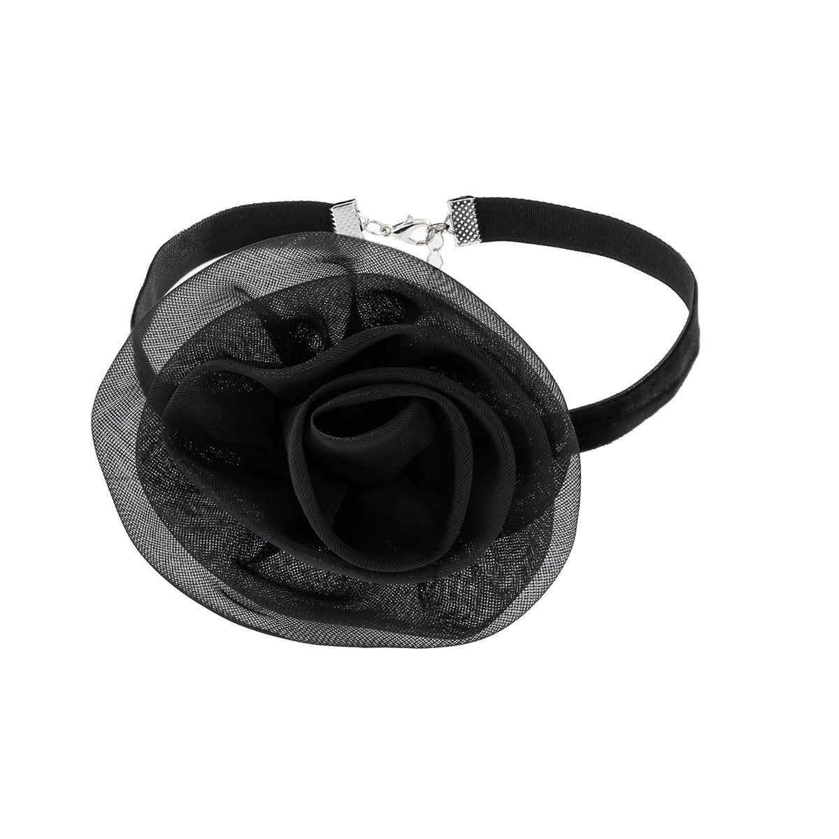 黑色网纱花朵植绒布项链女 2026春季新潮复古时尚网红ins锁骨链酷