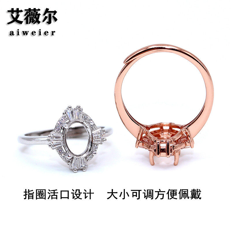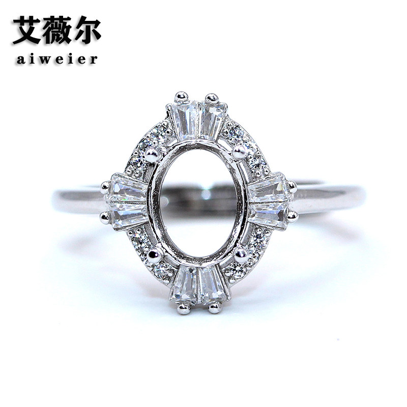 春季新款戒指空托女925银来石镶嵌代加工定制提钻戒托4*6-8*10mm
