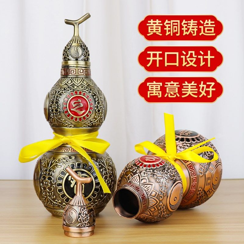 速发纯黄铜开口铜葫芦镇宅八卦葫室挂件开禄空心卧芦家居装饰福盖