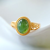 和田碧玉玉髓S925银镀金蛋面蕾丝花边镂空开口可调节戒指故宫新品