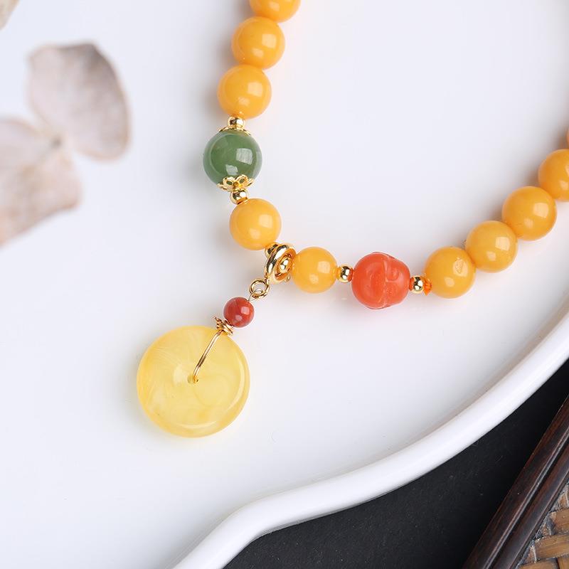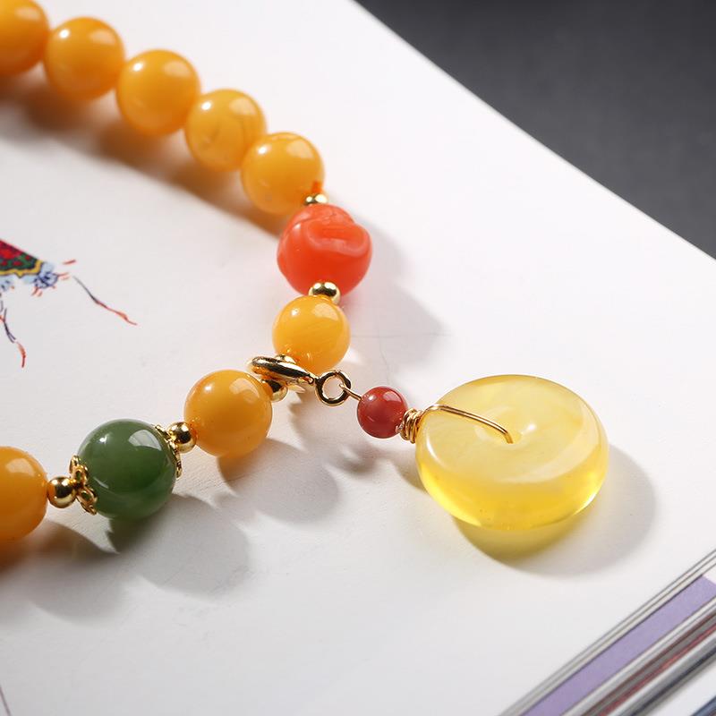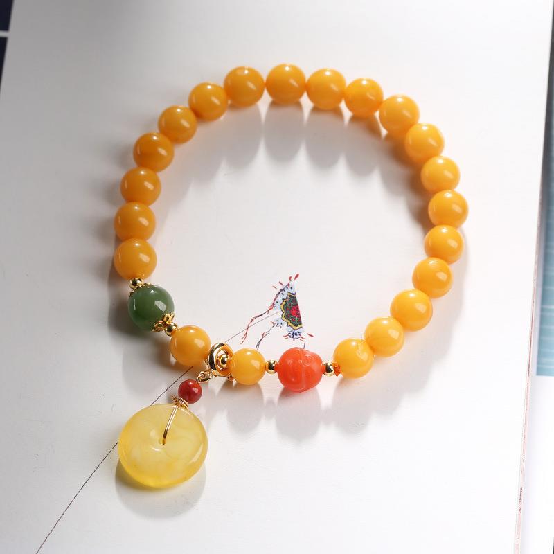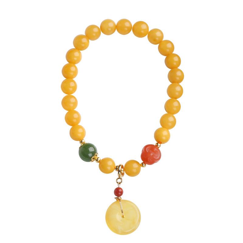 原创设计7MM天然蜜蜡单圈手链蜜蜡吊平安扣手串复古中国风女手饰