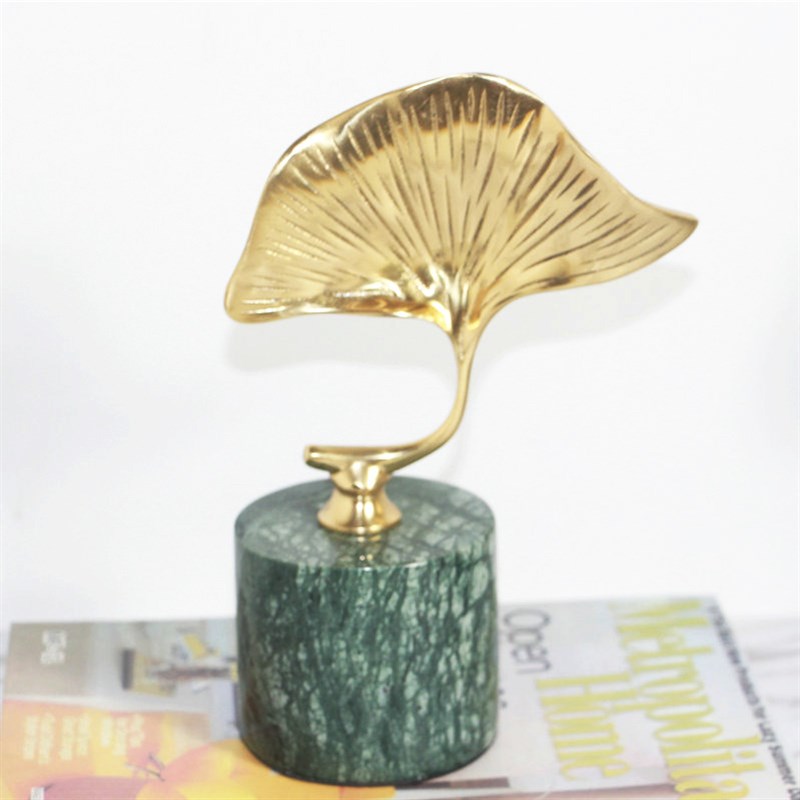 新中式黄c铜银杏叶书架摆件装饰摆设品样板房家居酒柜软装装饰